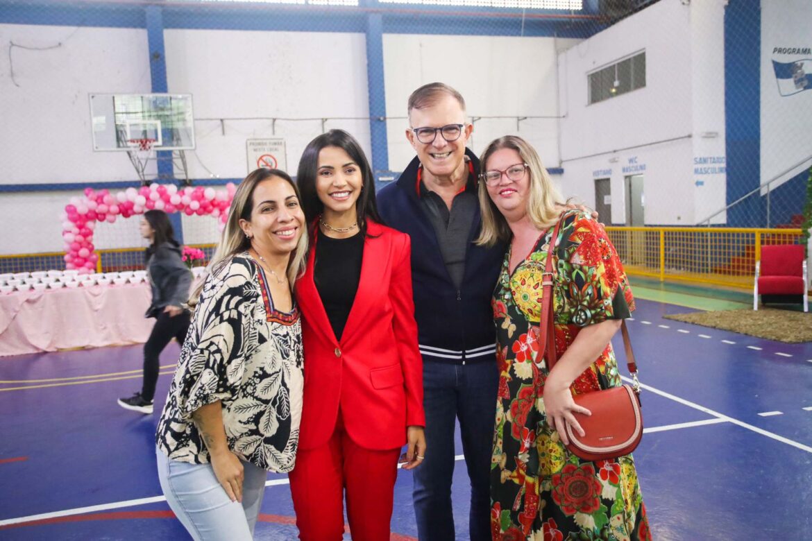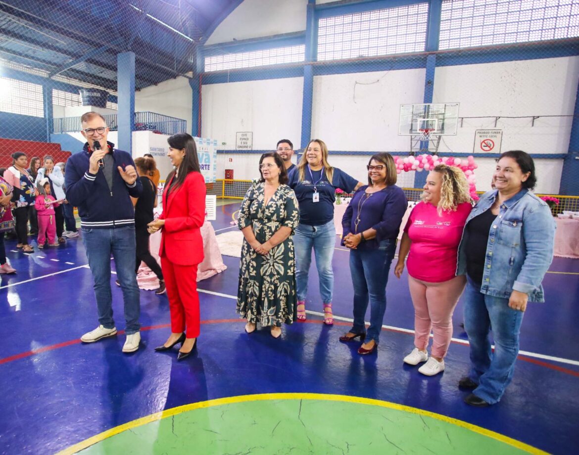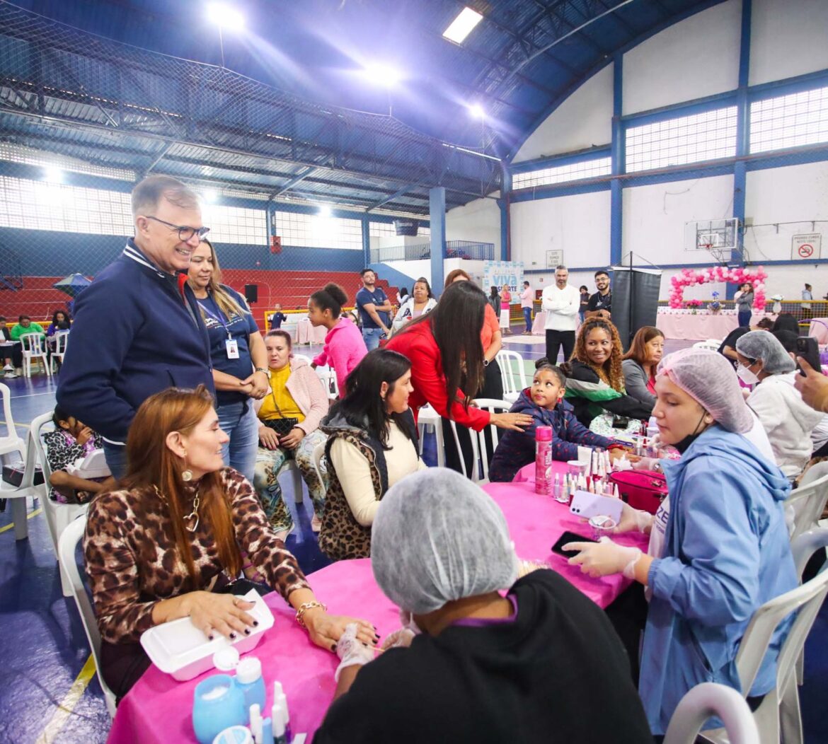 Prefeitura de Arujá, por meio da Secretaria Municipal de Assistência Social, organizou neste sábado (23) um evento de saúde, autocuidado e fortalecimento de vínculo social, destinado às 213 mulheres bolsistas do Programa Emergencial Auxílio ao Desemprego – Frente de Trabalho, como parte das celebrações do Mês da Mulher na cidade. Realizada no Ginásio de Esportes “Habib Tannuri”, a ação ofereceu procedimentos estéticos, cortes de cabelo e exames de saúde, em parceria com o Instituto Embelleze, Thaís Concept e o apoio da Secretaria Municipal de Saúde com o ônibus “Saúde nos Bairros”.