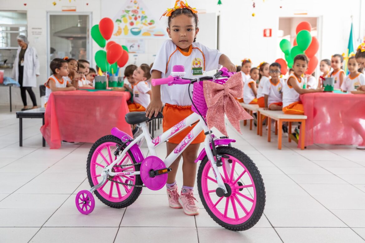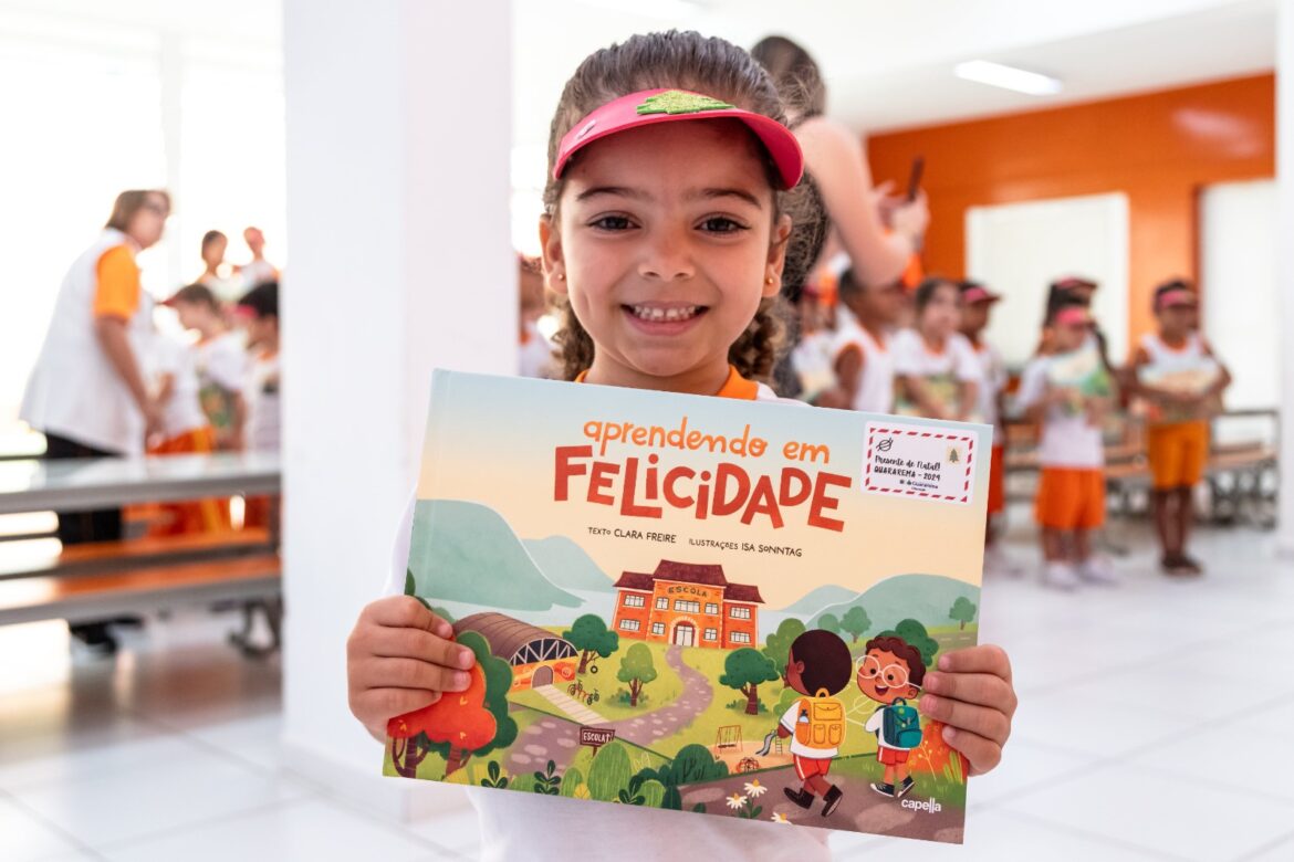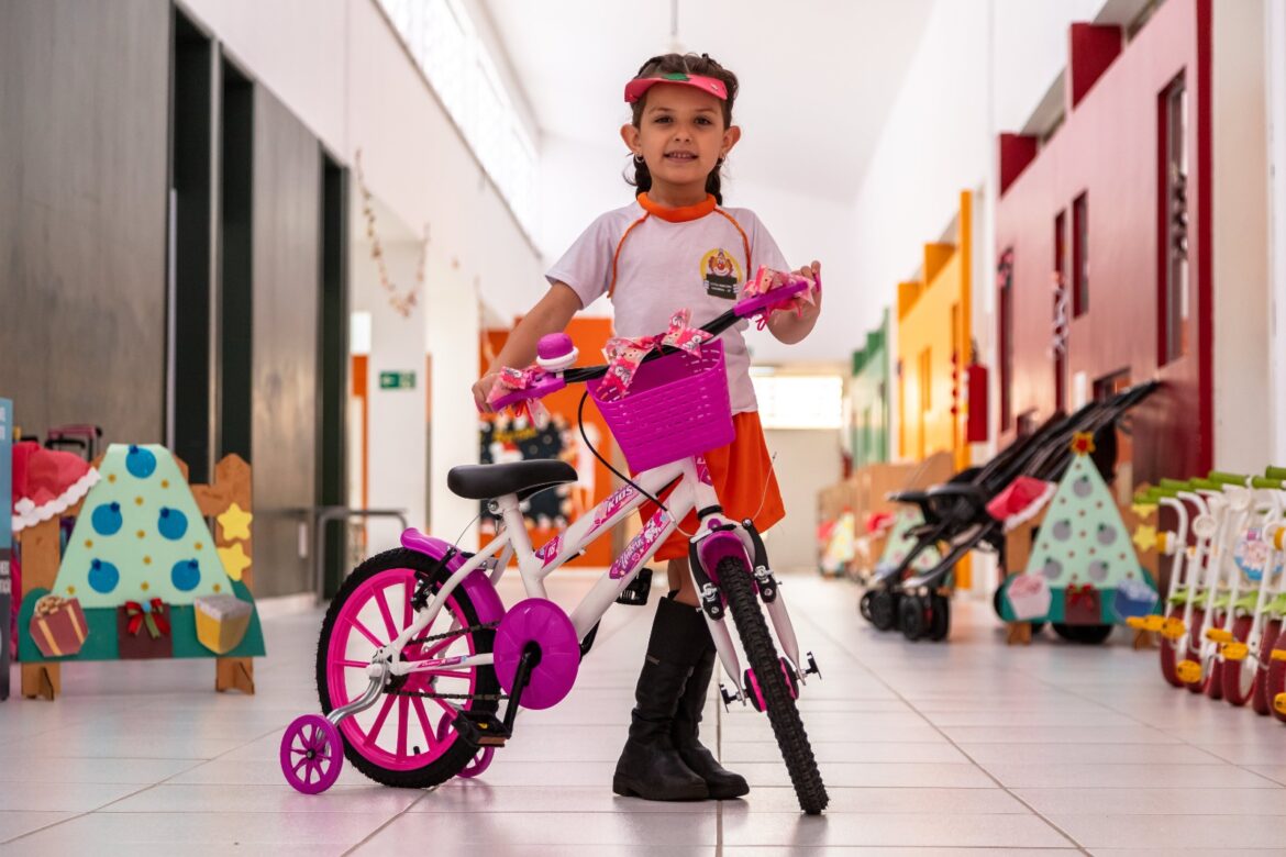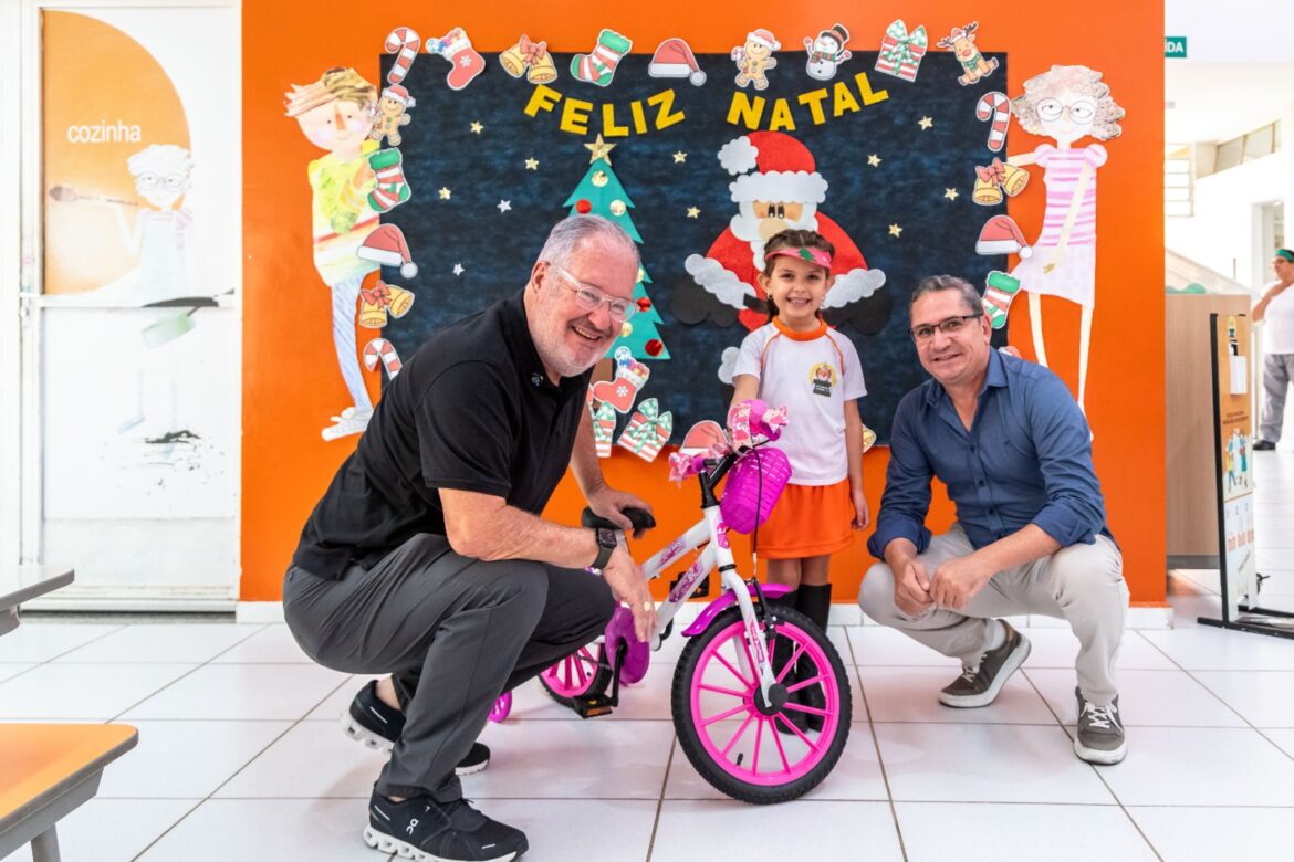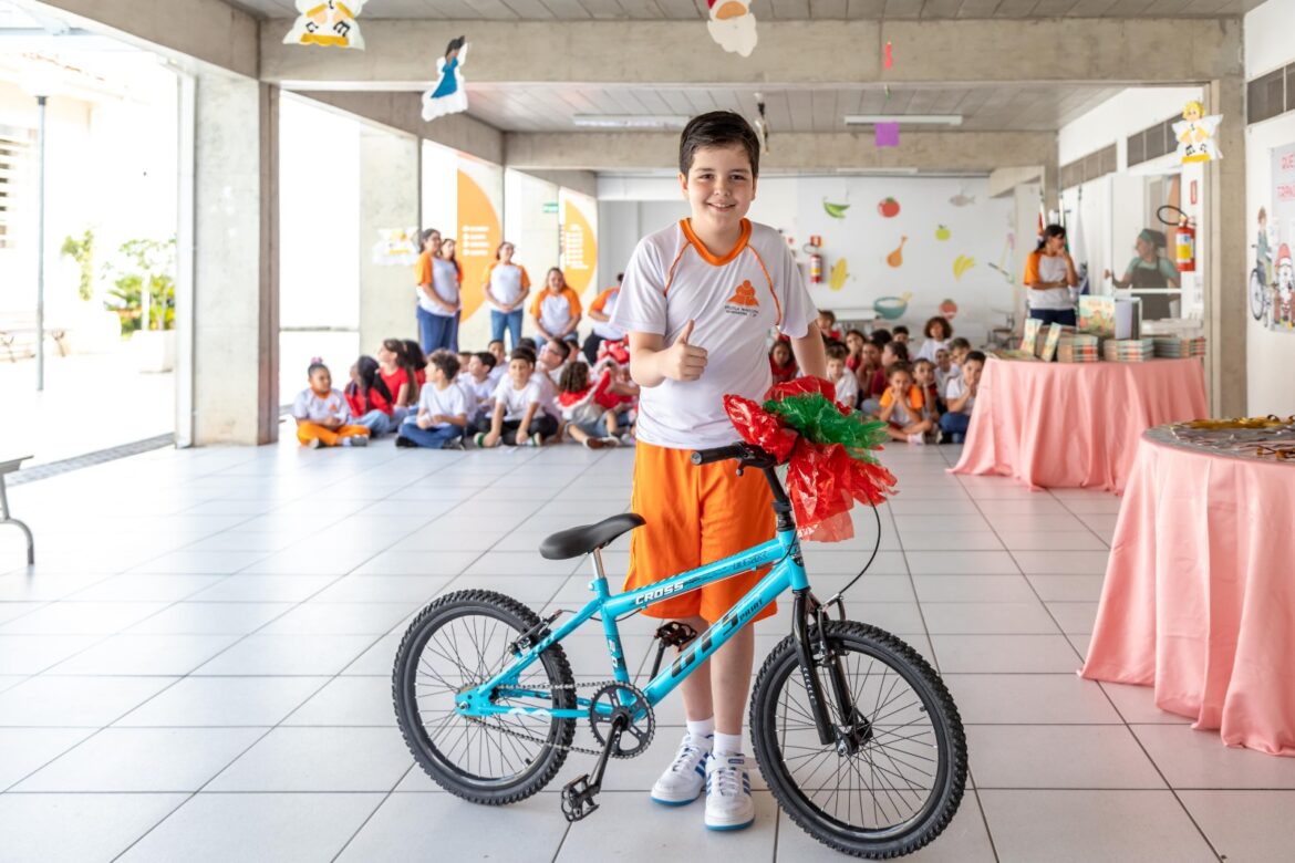 Durante os almoços realizados nas unidades de ensino, que seguem até o dia 20, a hora da merenda é especial com cardápio diferenciado para celebrar a época do Natal e também a entrega das bicicletas. E como todas as crianças contribuíram para a preservação do meio ambiente, todas elas, do Berçário I ao 5º ano, ganharam um exemplar do livro “Aprendendo em Felicidade”, da Capella Editorial.