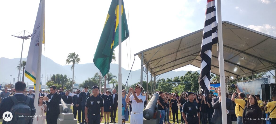 São Sebastião completou 388 anos de aniversário de emancipação político-administrativa, neste sábado (16). Como manda a tradição, a Praça Almirante Tamandaré, conhecida como Praça da Marinha, na Rua da Praia, recebeu a solenidade de hasteamento dos pavilhões com participação de um grande público.