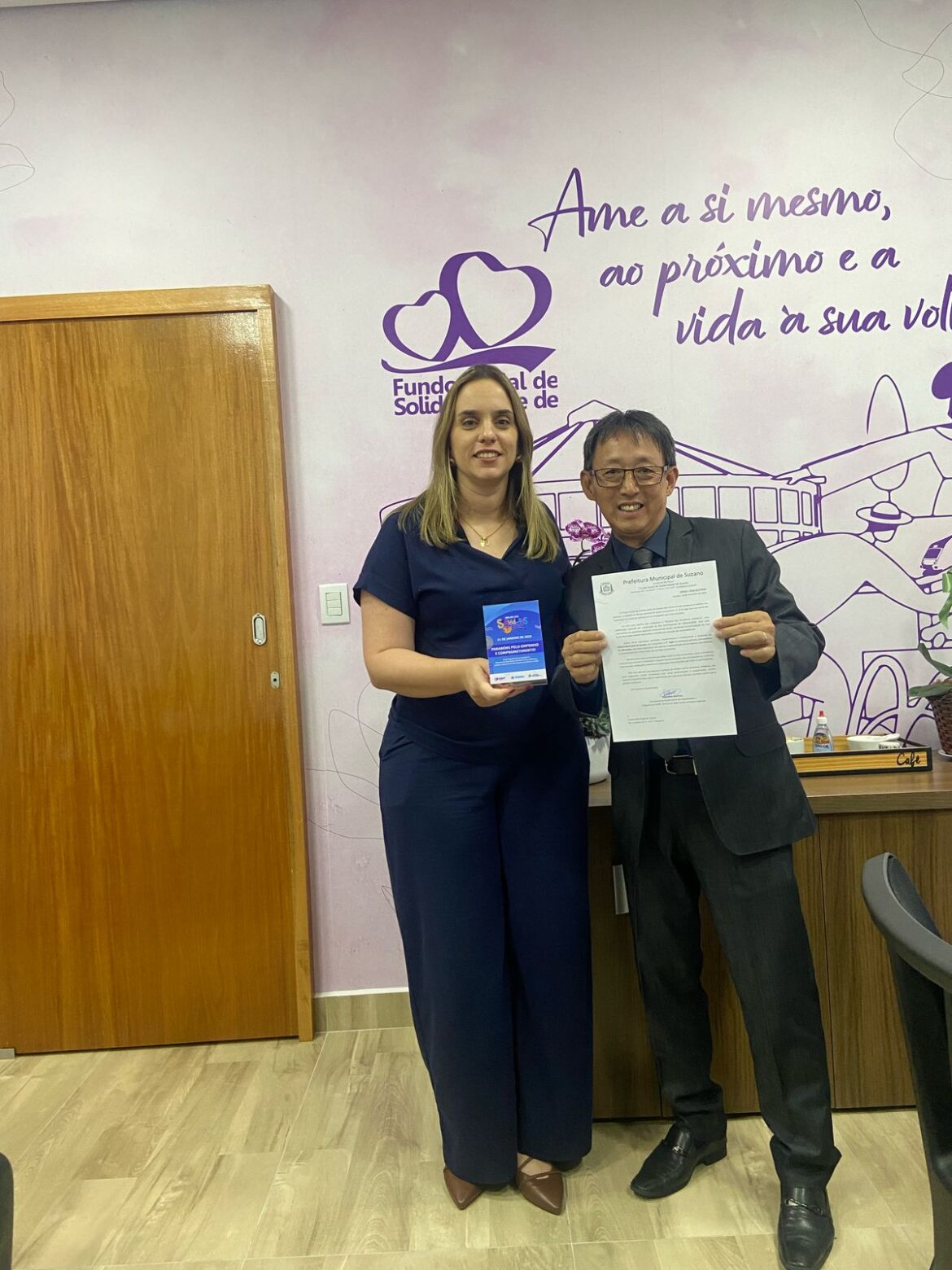 Após a conquista do primeiro lugar na Gincana dos Servidores Solidários, a Câmara de Suzano recebeu uma placa e um ofício do Fundo Social de Solidariedade parabenizando pela arrecadação de 15.198 fraldas infantis na competição. A entrega foi feita na tarde de sexta-feira (14), ao presidente do Legislativo, Artur Takayama (PL), pela primeira-dama Déborah Raffoul Ishi.