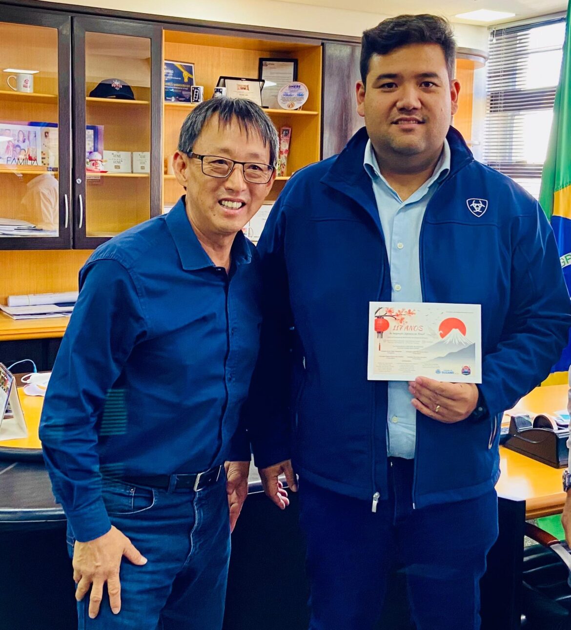 O presidente da Câmara de Suzano, Artur Takayama (PL), entregou na tarde de segunda (2) o convite para a sessão solene que comemorará os 117 anos da Imigração Japonesa no Brasil, que será realizada no dia 27 de junho no Legislativo, ao prefeito Pedro Ishi (PL).