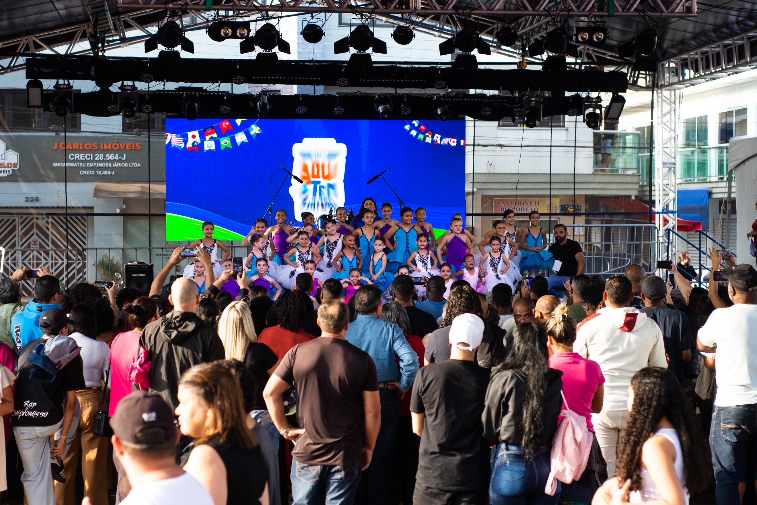 As apresentações começaram no início da tarde com o ballet da Escola Livre de Dança e dos polos culturais Barreto e União, sob coordenação da Secretaria Municipal de Cultura. Ao todo, cerca de 180 crianças e adolescentes, entre 4 e 16 anos, apresentaram coreografias inspiradas em diferentes ritmos e estilos, ocupando o palco montado na praça com figurinos coloridos e performance sincronizada.
