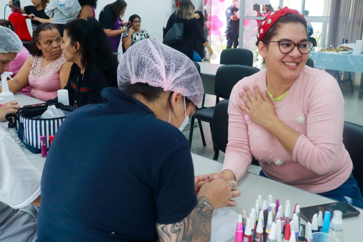 Em um gesto de solidariedade e carinho, a cidade de Arujá abraçou na quarta-feira (18), em tom especial, a campanha do Outubro Rosa, que aborda a luta contra o câncer de mama. A Prefeitura, em colaboração com o Instituto Embelleze Arujá, proporcionou um dia de beleza e bem-estar para mais de 40 mulheres beneficiárias do Programa Municipal “Renda Mínima”, todas referenciadas pelo Centro de Referência de Assistência Social (CRAS) Cerejeiras. O evento aconteceu no espaço da Estação Cidadania, onde as participantes foram recebidas com tratamento de massagem, cuidados capilares e esmaltação, realizados pelos alunos e instrutores do Instituto Embelleze Arujá, instituição de ensino voltada para a formação profissional na área da beleza, junto à massoterapeuta voluntária, Rosana Freitas.