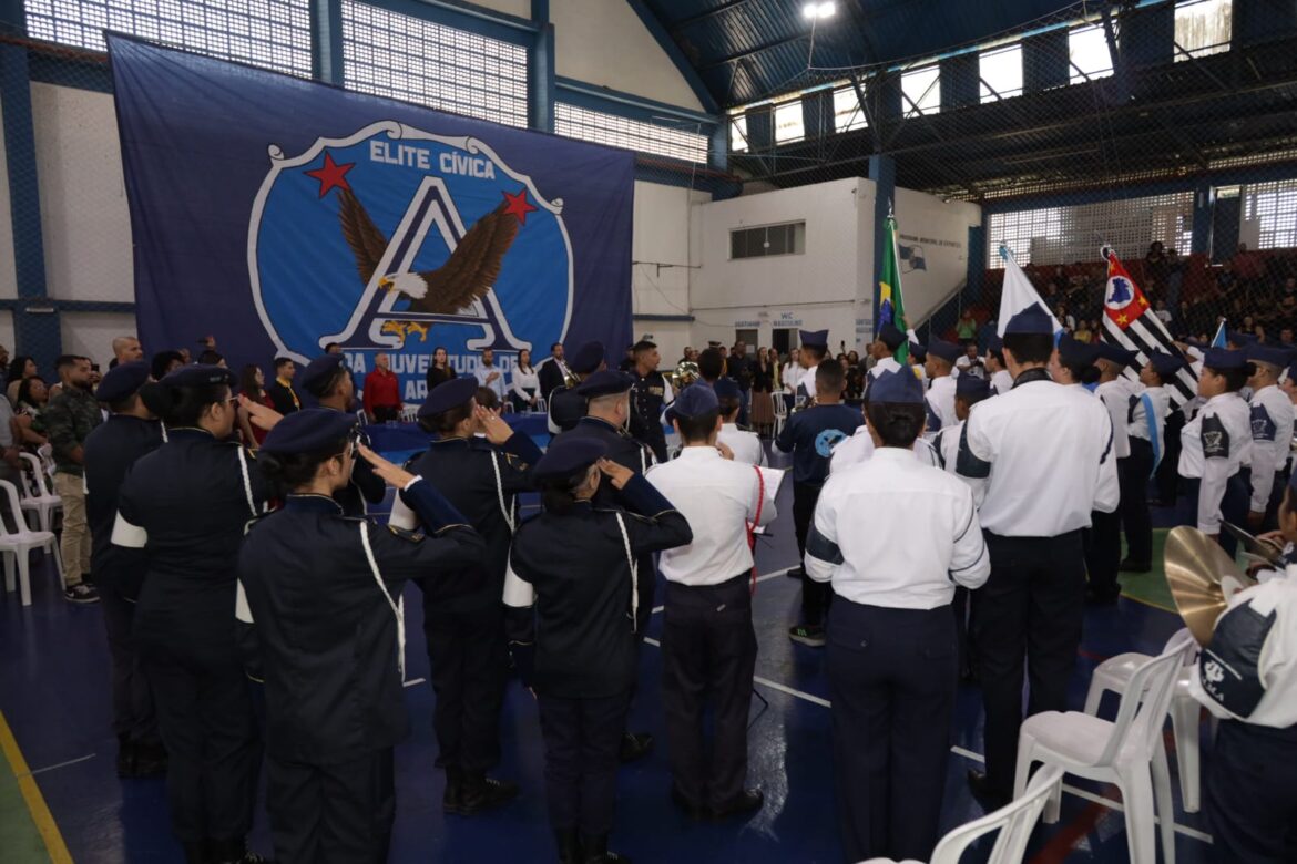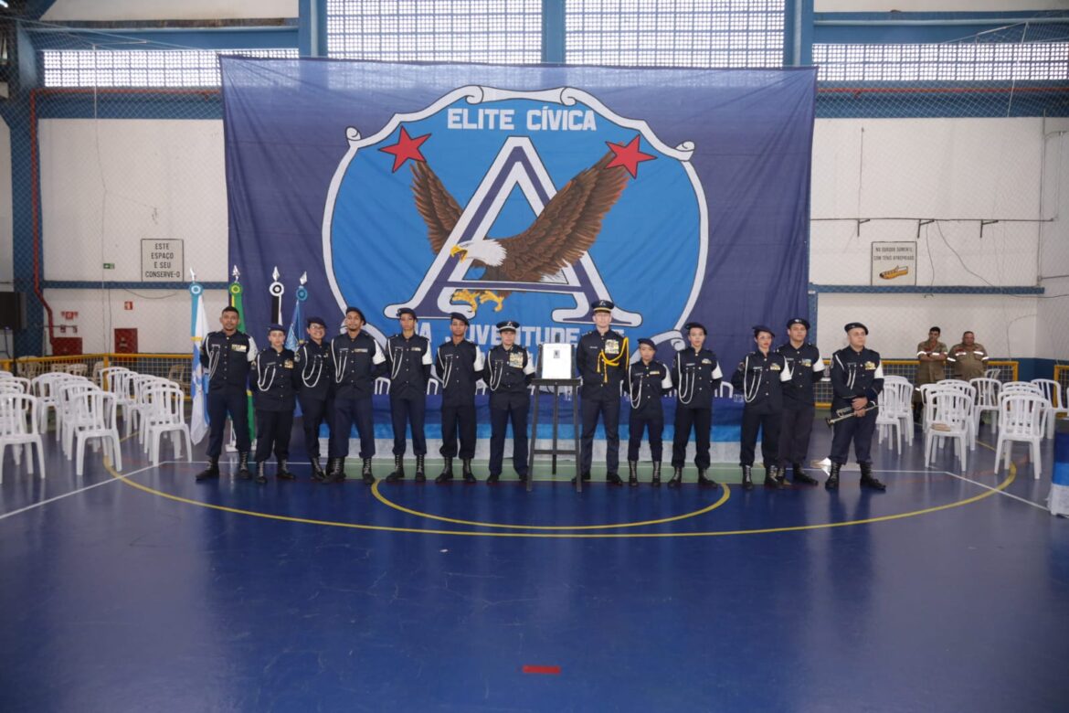 A secretária-adjunta de Assistência Social, Juliana Daniel, relembrou os recentes investimentos da administração municipal no setor de segurança pública, pelo projeto Arujá +Segura, como a criação do Centro de Operações Integradas (COI), aumento da frota de veículos da GCM e a instalação de câmeras de monitoramento pelo município. “A Elite Cívica representa um símbolo poderoso, de comprometimento, responsabilidade e oportunidades. Desde o início desta jornada, testemunhamos o crescimento de muitos jovens e a transformação de suas vidas. Cada um deles demonstrou coragem, determinação e a vontade de fazer a diferença em nossa cidade”. Em mensagem ao público do evento, ela destacou: “Vocês são verdadeiros agentes de mudanças, sigam em frente inspirando outros e sejam a diferença que desejam ver no mundo”.