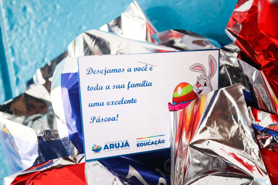 Na terça-feira (26), a Prefeitura de Arujá, por meio da Secretaria Municipal de Educação, deu início à entrega dos ovos de Páscoa para mais de 11 mil alunos da rede municipal de ensino. Visando a saúde de cada criança, foram disponibilizadas 4 opções: o tradicional ao leite, um sem lactose, um sem açúcar e um de alfarroba, para os alunos com alergia ao cacau. Cada unidade será entregue de acordo com a ficha clínica do aluno. A distribuição dos ovos será concluída até quinta-feira (28).