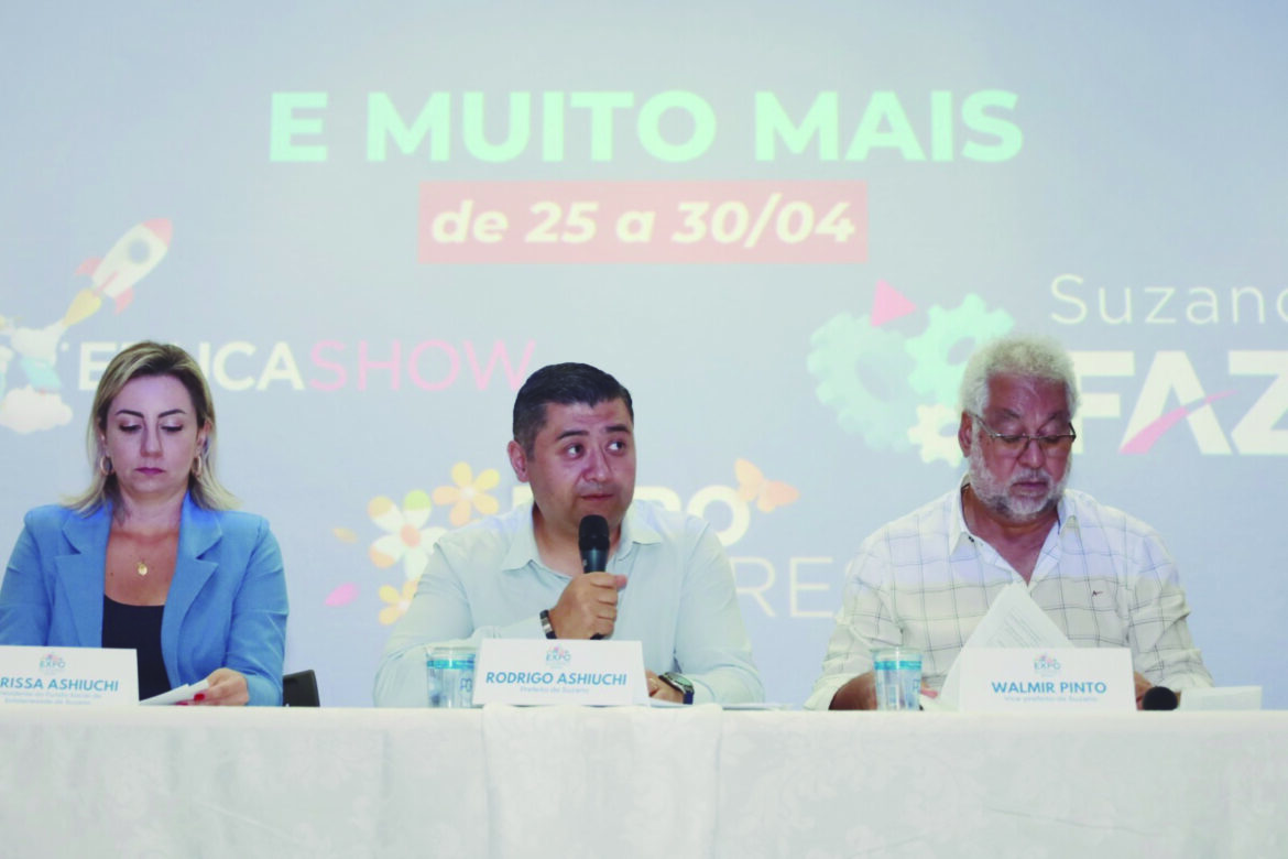 O prefeito Rodrigo Ashiuchi apresentou em coletiva de imprensa realizada na tarde de sexta-feira (24/03), no Cineteatro Wilma Bentivegna, a programação oficial das atividades em comemoração aos 74 anos de Suzano. Acompanhado da primeira-dama e presidente do Fundo Social de Solidariedade, Larissa Ashiuchi, e do vice-prefeito e secretário de Cultura, Walmir Pinto, o chefe do Executivo anunciou três grandes shows que ocorrerão entre 31 de março e 2 de abril (sexta-feira a domingo), abrindo o chamado circuito 1 da ExpoSuzano, que terá atrações durante todo o mês. Com recursos viabilizará o show da dupla sertaneja Matheus e Kauan, às 19 horas. Ainda no domingo, mas às 15 horas, haverá o concerto da Orquestra Bachiana Filarmônica Sesi-SP dentro da Arena Suzano, sob a regência do maestro João Carlos Martins. Nas manhãs e tardes dos dias 1º e 2, a partir das 10 horas, haverá apresentações de artistas locais, como Raffa Augusto, Simão e Felipe, Naa domingo). A ExpoSuzano, neste circuito 2, contemplará atividades que trarão de volta as lembranças de eventos clássicos, como a Expo Flores, além da Feira da Indústria, que trará como marca o Suzano Faz, e do EducaShow, voltado aos experimentos tecnológicos aplicados na Educação. A ExpoFlores tem a intenção de marcar a retomada da than Ginach, Marcus e Bueno, Espora Country, Lissin, Chiquinho e Teresa, Groove do Tim, entre outros, que terão a oportunidade de mostrar seus trabalhos no Pavilhão Zumbi dos pela iniciativa privada, se apresentarão no Parque Max Feffer a banda de pop rock Jota Quest, o sambista Diogo Nogueira e a dupla sertaneja Matheus e Kauan. A Orquestra Bachiana Filarmônica Sesi–SP, sob a regência do maestro João Carlos Martins, também integra a programação. Para conferir os shows, os interessados poderão garantir os ingressos por meio da troca de um quilo de alimento não perecível, a partir da próxima segunda-feira (27/03), das 8 às 17 horas, em cinco locais: dos Palmares, onde também haverá exibição de dança de diversas escolas de Suzano, e em outros dois palcos monko Fukushima Katsumata Paço Municipal (rua Baruel, 501 – Centro); Parque Max Feffer (avenida Senador Roberto Simonsen, 90 – Jardim Imperador); Centro de Artes e Esportes Unificado (CEU) Alberto de Sousa Candido (rua Teruo Nishikawa, 570 – Jardim Gardênia Azul); Centro Cultural Palmeiras Professor Luiz Antônio da Silva (rua Crispim Adelino Cardoso, 42 – Vila Júlia); e Centro Cultural Casa Branca Fumi(rua Getúlio Moreira de Souza, 30 – Jardim Casa Branca). O dia 31 de março (sexta–feira) marcará o início das festividades, com a apresentação da banda de pop rock Jota Quest, marcada para as 20 horas. No sábado (01/04), a partir das 20 horas, sobe ao palco o cantor Diogo Nogueira. Já em 2 de abril (domingo), data de aniversário dos 74 anos de Suzano, acontecetados especialmente para o evento. Feiras de artesanato e de gastronomia serão outras atrações do fim de semana. Resgate Umas das propostas da programação de aniversário, planejadas pela Prefeitura de Suzano, é o resgate dos eventos culturais tradicionais da cidade, que também será realizada no Parque Max Feffer, entre os dias 25 e 30 de abril (terça identidade de Suzano como Cidade das Flores. Ocorrerá de 27 a 30 de abril, dentro da Arena Suzano, onde haverá exposição e venda de flores, abrindo oportunidade para os produtores locais mostrarem seus trabalhos. Nesses mesmos dias será realizado o Suzano Faz, voltado à troca de experiência entre players do ramo industrial e de serviços da região, apresentando ferramentas e possibilidades do segundo e terceiro setores. Já o EducaShow acontecerá entre os dias 25 e 30, para que os alunos da rede municipal possam ter acesso às ferramentas tecnológicas que f icarão à disposição, no intuito de ampliar a interatividade e a curiosidade dentro do campo da Educação.