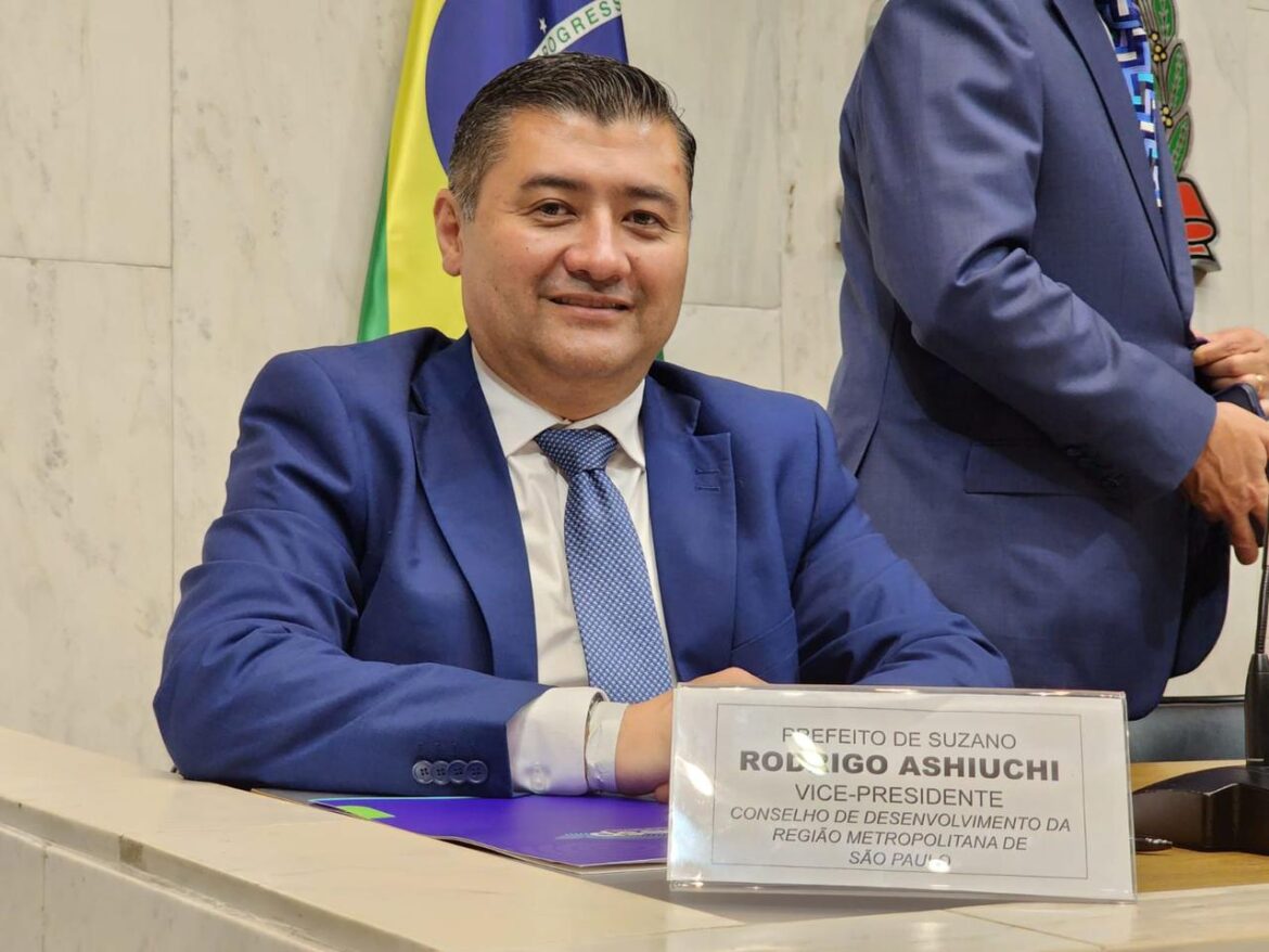 O prefeito de Suzano e vice-presidente do Conselho de Desenvolvimento da Região Metropolitana do Estado de São Paulo, Rodrigo Ashiuchi, esteve nesta segunda-feira (25/09) na 21ª reunião ordinária do colegiado, realizada na Assembleia Legislativa do Estado de São Paulo (Alesp), no bairro de Moema, zona sul da capital. Ashiuchi participou das deliberações do grupo, incluindo o encaminhamento do Plano de Desenvolvimento Urbano Integrado (PDUI), bem como reforçou demandas estratégicas do Consórcio de Desenvolvimento dos Municípios do Alto Tietê (Condemat) junto ao conselho liderado pelo presidente e prefeito de São Paulo, Ricardo Nunes. A reunião contou ainda com o presidente da Alesp, o deputado André do Prado, e com o subsecretário estadual de Desenvolvimento Urbano e Habitação, José Police Neto.