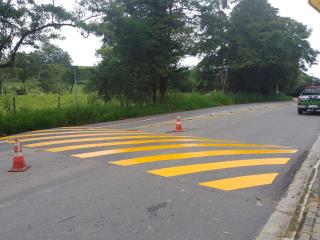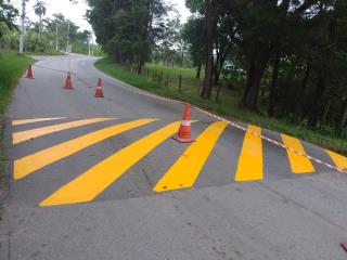 No final de semana, foram realizadas pintura dos redutores de velocidade (lombadas) da Estrada Municipal Prof.ª Olívia Alegri, que recebeu obras de melhorias, com a construção de uma ciclovia, recentemente. Em breve, a estrada receberá pintura também no eixo central.