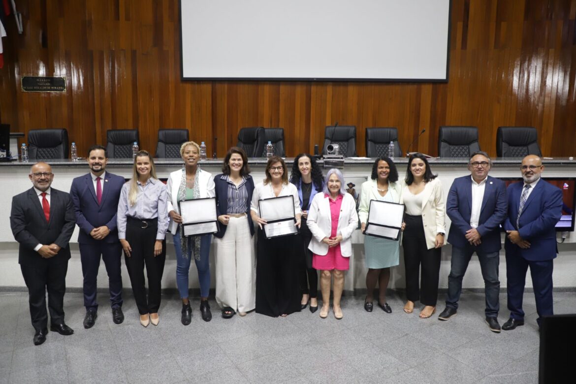Nesta noite, receberam placas de “Honra ao Mérito” a prefeita da Cidade, Mara Bertaiolli (PL), o coletivo feminista PLPs (Promotoras Legais Populares), representado pela integrante Sara Sousa, e a delegada titular das DDMs (Delegacia de Defesa da Mulher) de Mogi das Cruzes e Suzano, Silmara Marcelino.