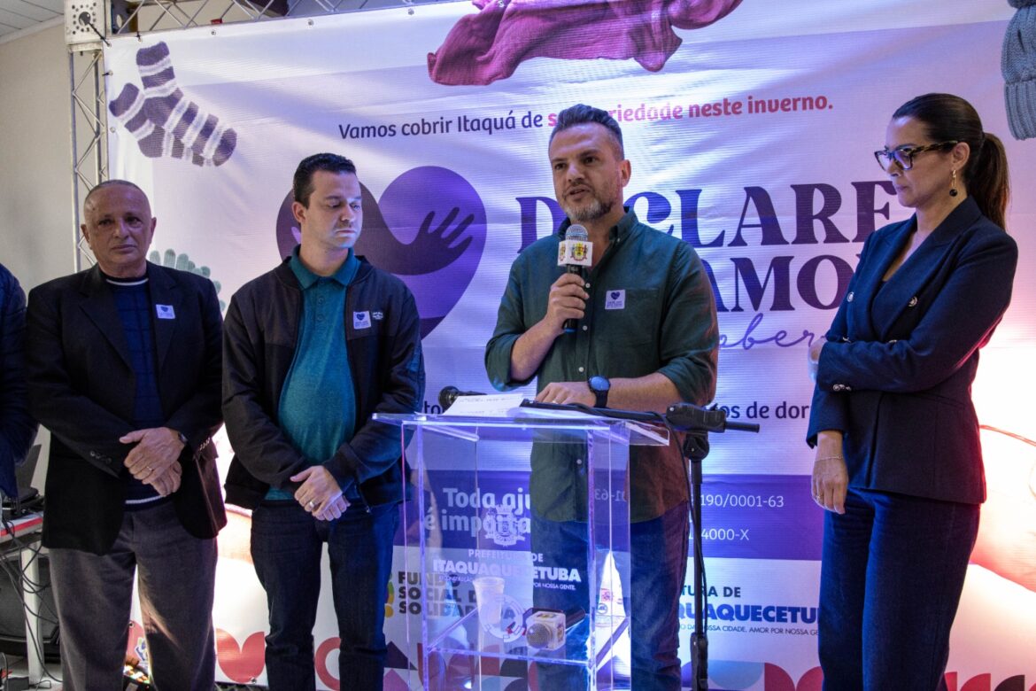 Nesta segunda-feira (29), foi lançada a campanha de inverno “Declare seu amor, doe um cobertor” do Fundo Social de Solidariedade de Itaquaquecetuba. O evento foi realizado na sede do órgão e visa arrecadar cobertores, meias, toucas e sacos de dormir novos para destinar às pessoas em situação de vulnerabilidade social do município.