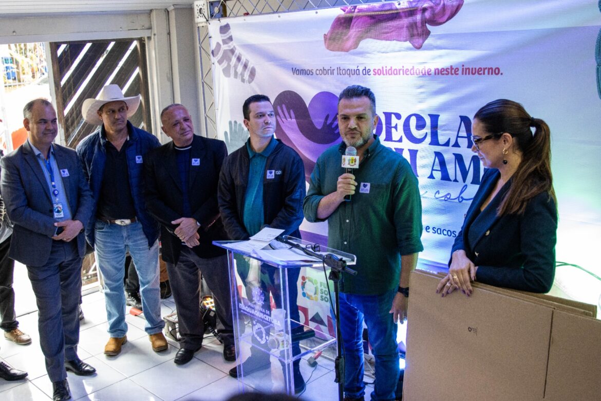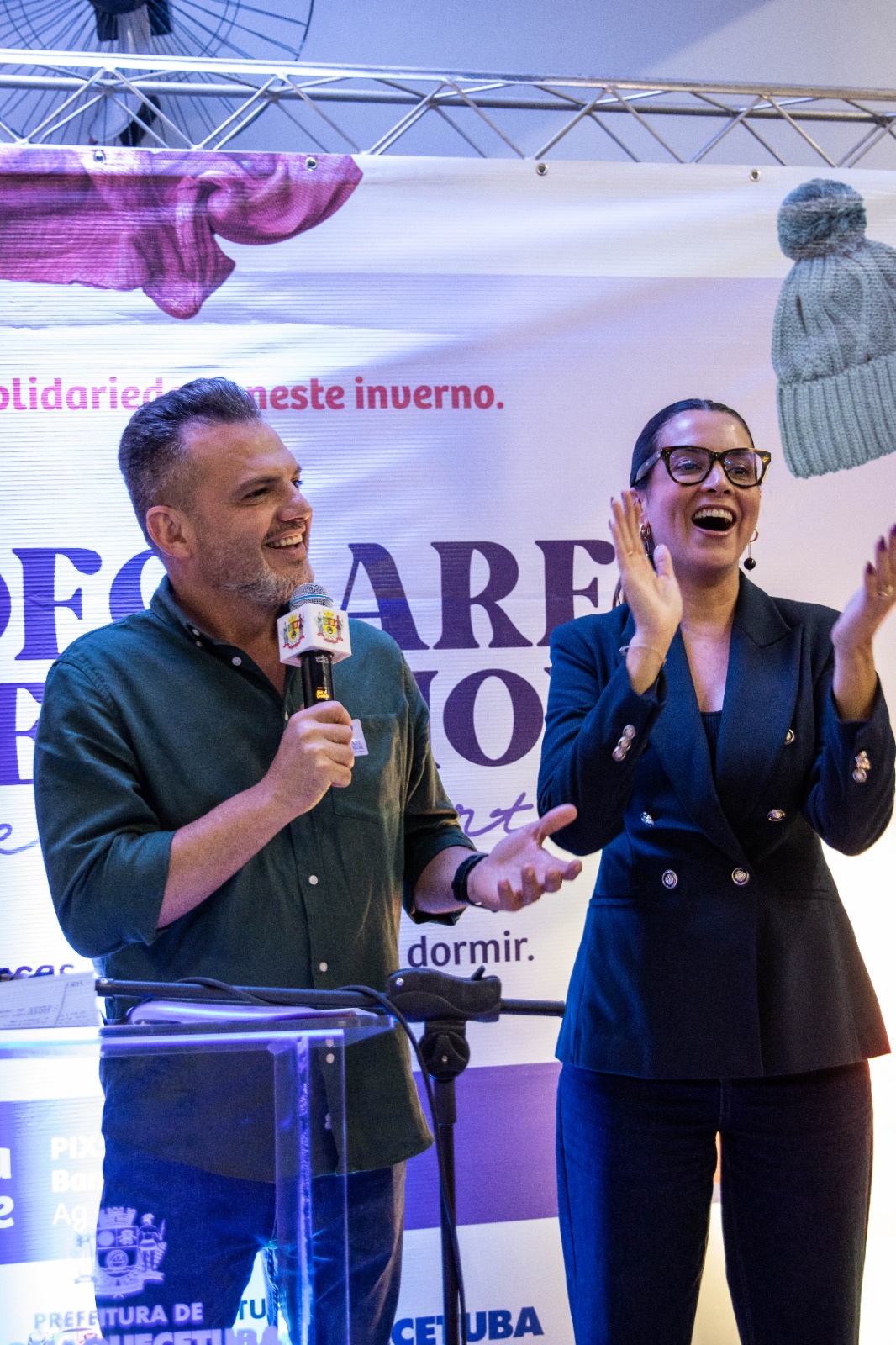 Estiveram presentes na cerimônia vereadores, secretários, a presidente do Fundo Social, Mila Prates, e o prefeito Eduardo Boigues. Em 2022, a meta de arrecadação, estimada e alcançada, era de 2,5 mil cobertores. Neste ano, como a campanha contempla mais itens, a meta é chegar a 5 mil.