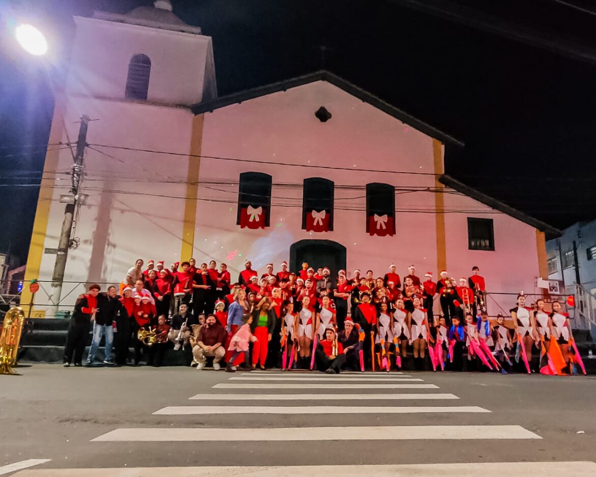 Na noite deste sábado (09), a fachada da igreja do Rosário ficou tomada pela magia do Natal. A Cantata Natalina foi interpretada pela Orquestra Municipal de Santa Isabel, com a participação de crianças de todas as idades.