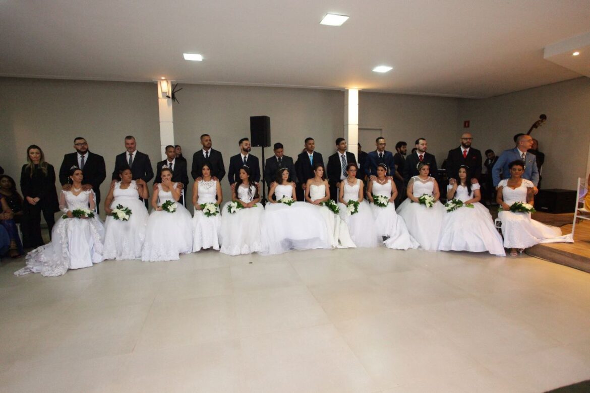 Dia mais que especial para 25 casais de Arujá, que trocaram alianças na 2ª edição do Casamento Comunitário. Desenvolvido pelo Fundo Social de Solidariedade de Arujá, ao lado da Prefeitura, por meio da Secretaria Municipal de Assistencial Social, o programa contemplou os noivos com procedimento civil, cerimônia religiosa, convites impressos e festa, com buffet de salgados, finger food, jantar, bolo e docinhos, além de bancar as despesas com cartório, proporcionar o dia da noiva, oferecer buquês e arranjos florais. Neste ano, o esforço da primeira-dama e presidente do Fundo, Clau Camargo, rendeu a todas as noivas a locação sem custos dos sonhados vestidos. Foi resultado da colaboração da Mansão das Noivas, de São Paulo. Os matrimônios foram realizados neste domingo (09) no Arufest, que cedeu suas luxuosas instalações para a realização do evento.