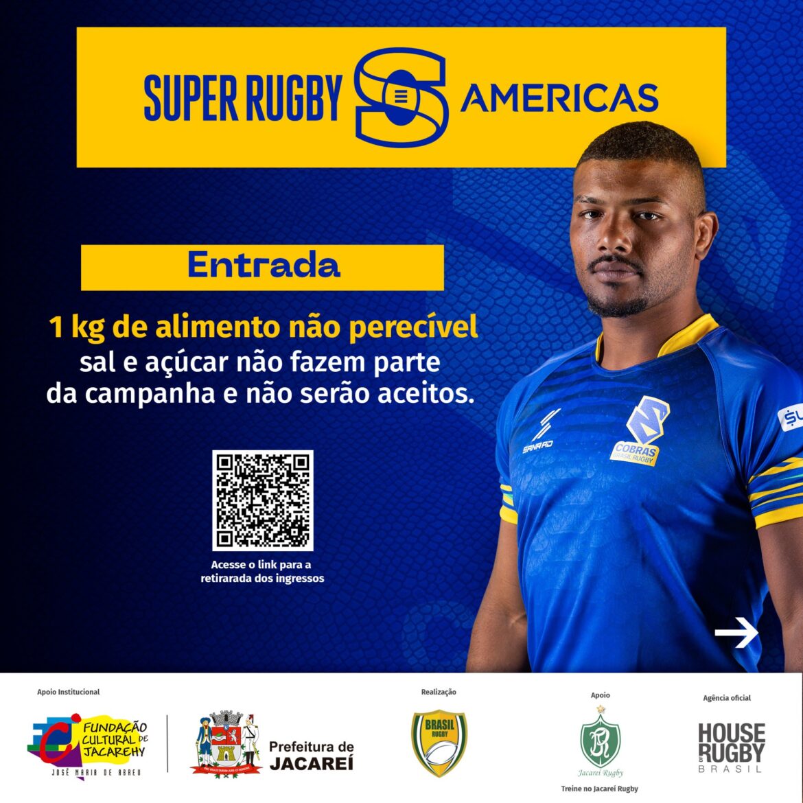 O jogo de estreia é entre o representante brasileiro na competição, Cobras Brasil e o atual campeão Penãrol, do Uruguai. O público poderá assistir às partidas doando 1kg de alimento não perecível (exceto sal e açúcar). Para obter o ingresso é só acessar o link https://www.ingresse.com/cobras-no-super-rugby-americas e apresentá-lo com o quilo de alimento na entrada do estádio.