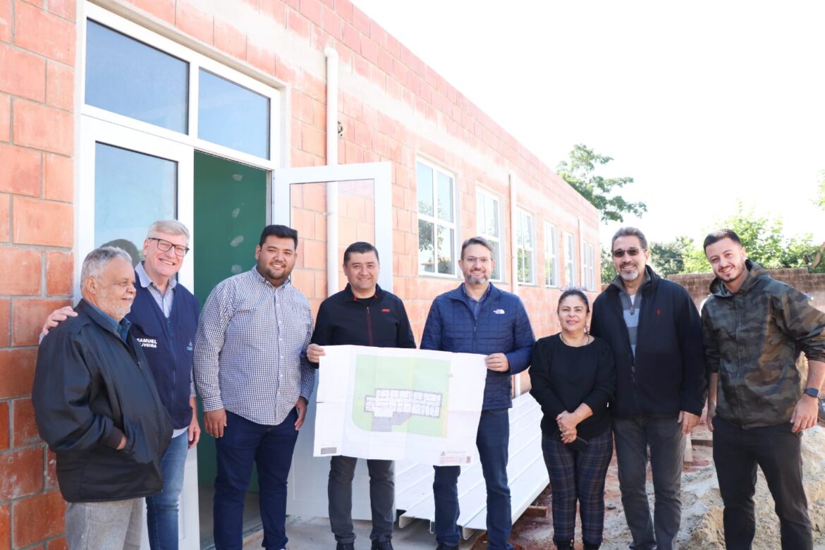 As obras da nova Unidade Básica de Saúde (UBS) do Parque do Colégio, que está sendo construída na rua Inácio Garcia, chegaram a 77% de conclusão. Atualmente, a estrutura está recebendo pintura interna do prédio e intervenções na recepção e na tubulação de água pluvial, assim como serviços que garantirão a finalização da parte elétrica e a construção da rampa e da escada de acesso dos funcionários. O andamento dos trabalhos tem sido acompanhado de perto pelo prefeito Rodrigo Ashiuchi, que esteve no local nesta quarta-feira (29/05), na companhia dos secretários municipais de Saúde, Diego Ferreira; e de Manutenção e Serviços Urbanos, Samuel Oliveira, além do vereador Pedro Ishi. O equipamento será entregue no segundo semestre deste ano.