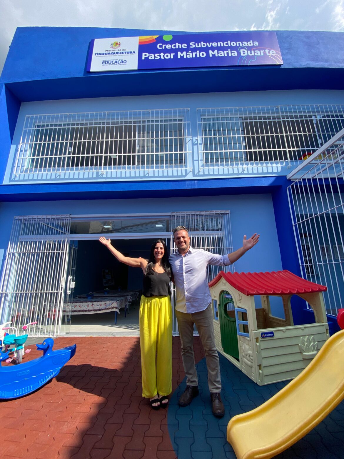 A Prefeitura de Itaquaquecetuba reinaugurou a Creche Pastor Mário Maria Duarte, no Parque Piratininga, a segunda unidade entregue no bairro em uma semana. A creche, que tinha capacidade para 77 crianças, passa a atender 135 estudantes de 0 a 3 anos e 11 meses. A novidade foi divulgada durante uma cerimônia na quinta-feira (14), que contou com a presença do prefeito Eduardo Boigues, secretários, vereadores, familiares do patrono e munícipes. Uma homenagem foi realizada pela equipe e crianças da creche, além da entrega de lembrancinhas.A escola possui três salas de aula, dois berçários, espaço coberto com brinquedos, parque ao ar livre, refeitório, cozinha, despensa, pátio, secretaria, copa, almoxarifados, banheiros, espaço para banho com trocador, área de serviço e elevador para crianças com deficiência.“Parte da escola funcionava em um porão e hoje estamos entregando um espaço digno, totalmente novo porque as crianças merecem desenvolver suas potencialidades da maneira correta. Estou muito feliz pela segunda escola que entregamos no Piratininga em apenas uma semana”, destacou a secretária de Educação, Maria Cristina Perpétuo.“A parceria com a iniciativa privada faz grande diferença para a prefeitura e essa unidade subvencionada foi uma conquista para a nossa Educação. Tenho certeza que as mães e, principalmente, as crianças vão amar cada detalhe da creche”, finalizou o prefeito.