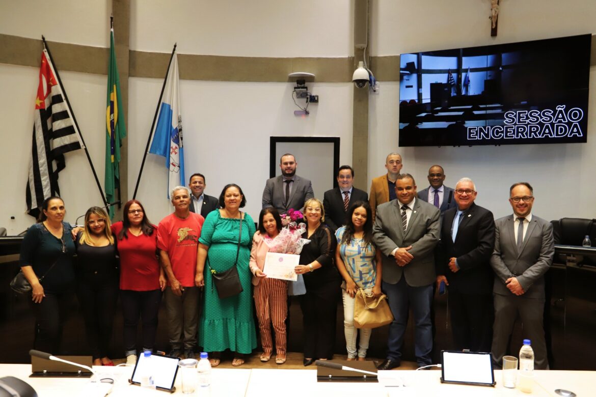 A criadora da Associação União de Moradores da Cidade de Arujá e Parque Rodrigo Barreto, Lindalva Santos Bezerra, conhecida como Dalva, foi homenageada por Moção de Aplausos e Parabenização (nº 147/2023) no quadro “Mulheres que Inspiram”. A iniciava do projeto é da Prof.ª Cris do Barreto (PSD) e a parabenização aconteceu na 91ª Sessão Ordinária, no último dia 27/3.