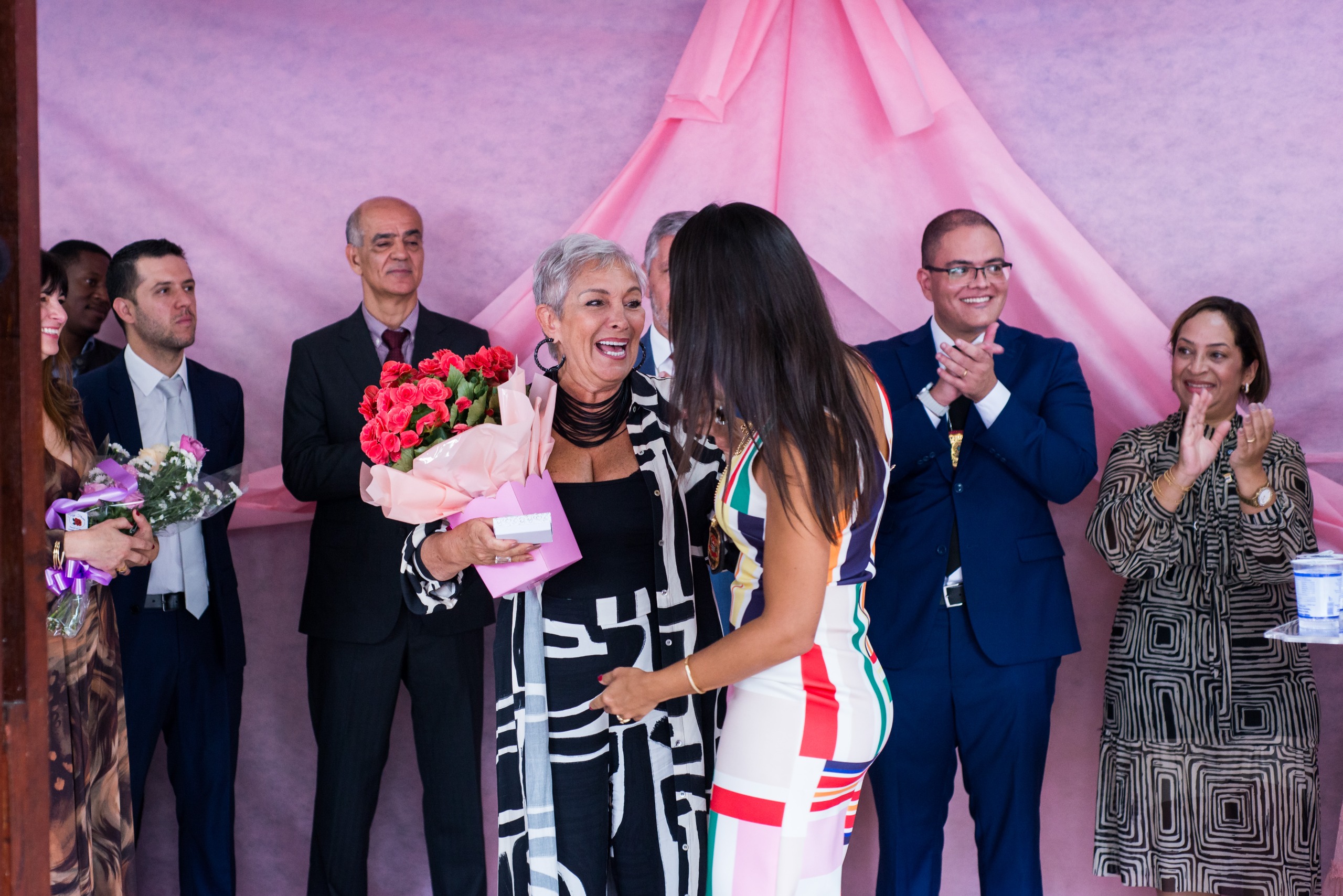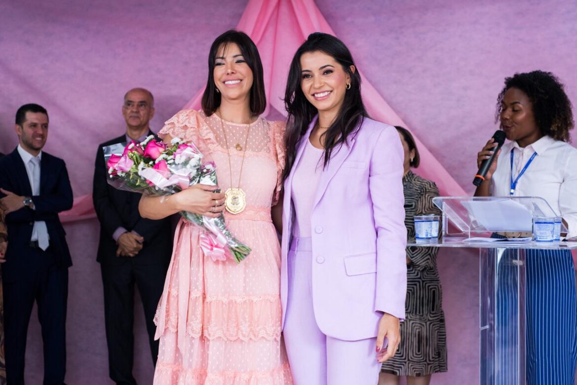 Durante o evento, houve homenagens com flores para mulheres que já foram vítimas de violência doméstica e foram atendidas pela DDM, assim como a entrega de uma pintura emblemática, feita na sede da delegacia e denominada “O Mar de Si” pela artista plástica Lysette Nader. Thaise Novais deu voz aos hinos nacional e de Arujá, bem como as bandeiras foram trazidas pela Elite Cívica da Guarda Mirim, sob o comando da subtenente Flávia Patrícia.