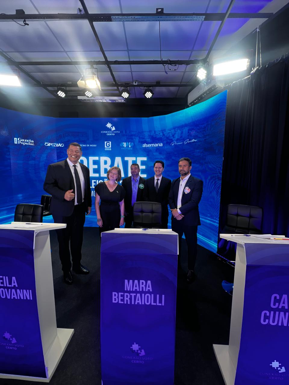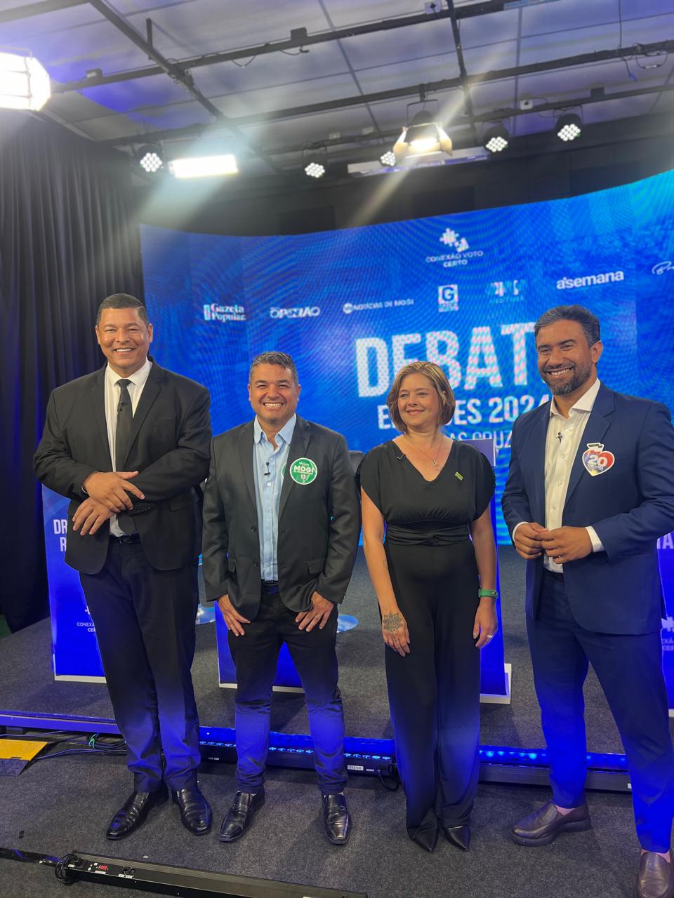 Na quinta-feira (26), às 21 horas, a Conexão Voto Certo e a Bruno Santos Treinamentos promoveram o primeiro debate entre os candidatos à Prefeitura Municipal de Mogi das Cruzes. O evento, realizado na Artes Filmes e transmitido pelo YouTube, contou com o apoio de veículos de comunicação locais, como o jornal A Semana, Notícias de Mogi, Gazeta Popular, Gazeta Regional e a Revista Opinião, além da Associação de Profissionais de Propaganda do Alto Tietê (APP). O debate teve a participação de Dr. Roberto Rodrigues (PRTB), Rodrigo Valverde (PT), Sheila Mantovanni (Mobiliza) e Caio Cunha (Podemos). A candidata do PL, Mara Bertaiolli, não compareceu devido a compromissos previamente agendados.