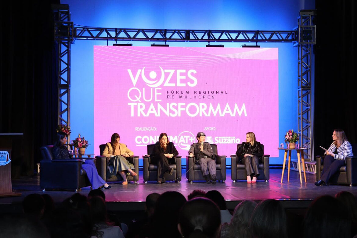 Suzano sediou nesta quinta-feira (26/06) a primeira edição do Fórum Regional de Mulheres – Vozes que Transformam, uma iniciativa inédita da Câmara Técnica de Políticas Públicas para Mulheres do Consórcio de Desenvolvimento dos Municípios do Alto Tietê (Condemat+). Realizado no Teatro Municipal Dr. Armando de Ré, o evento reuniu representantes de destaque na segurança pública, na Justiça e na vida pública da região, com o objetivo de fomentar o fortalecimento das políticas públicas voltadas ao público feminino.