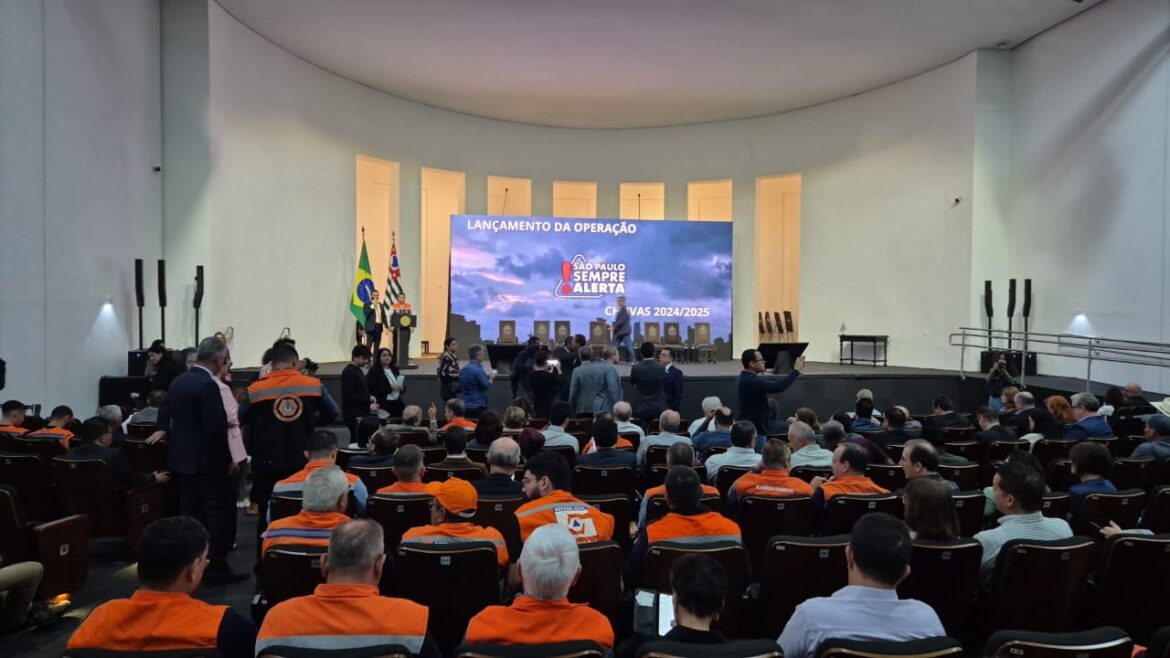 Representada pelo secretário municipal de Segurança Pública, Washington Adami, a Prefeitura de Arujá se fez presente no Palácio do Morumbi, na quarta-feira (4), onde foi realizado o lançamento do programa “São Paulo Sempre Alerta”, um projeto que visa preparar a população do Estado para o período de chuvas de 2024/2025. O coordenador da Defesa Civil de Arujá, Sidnei Custódio de Souza, também prestigiou o evento, que contou com a presença do vice-governador de São Paulo Felicio Ramuth.