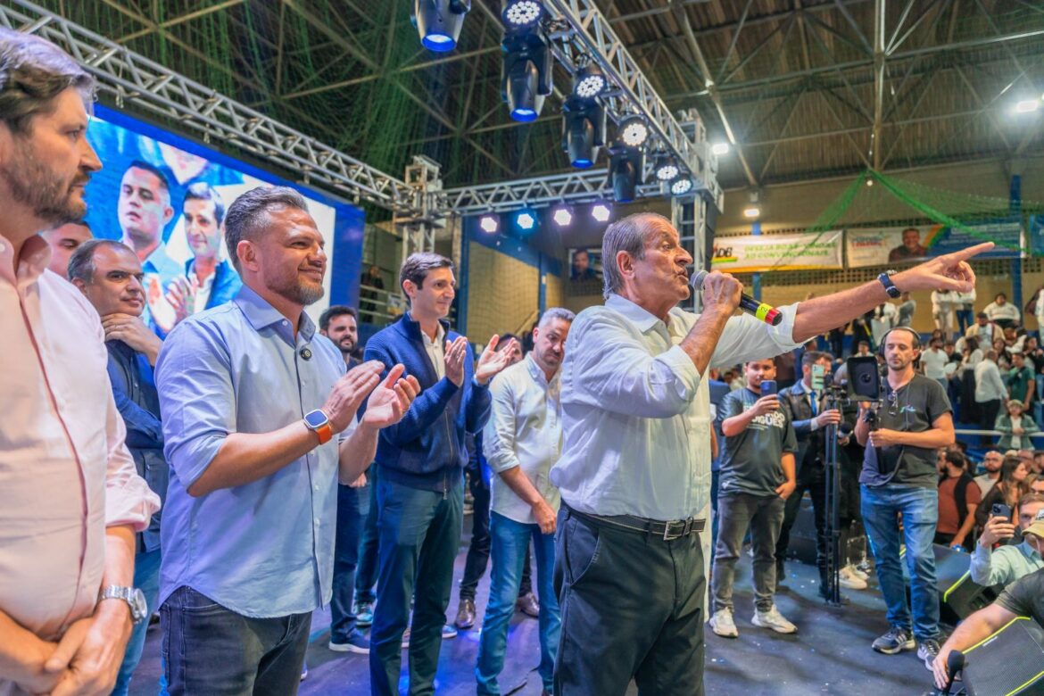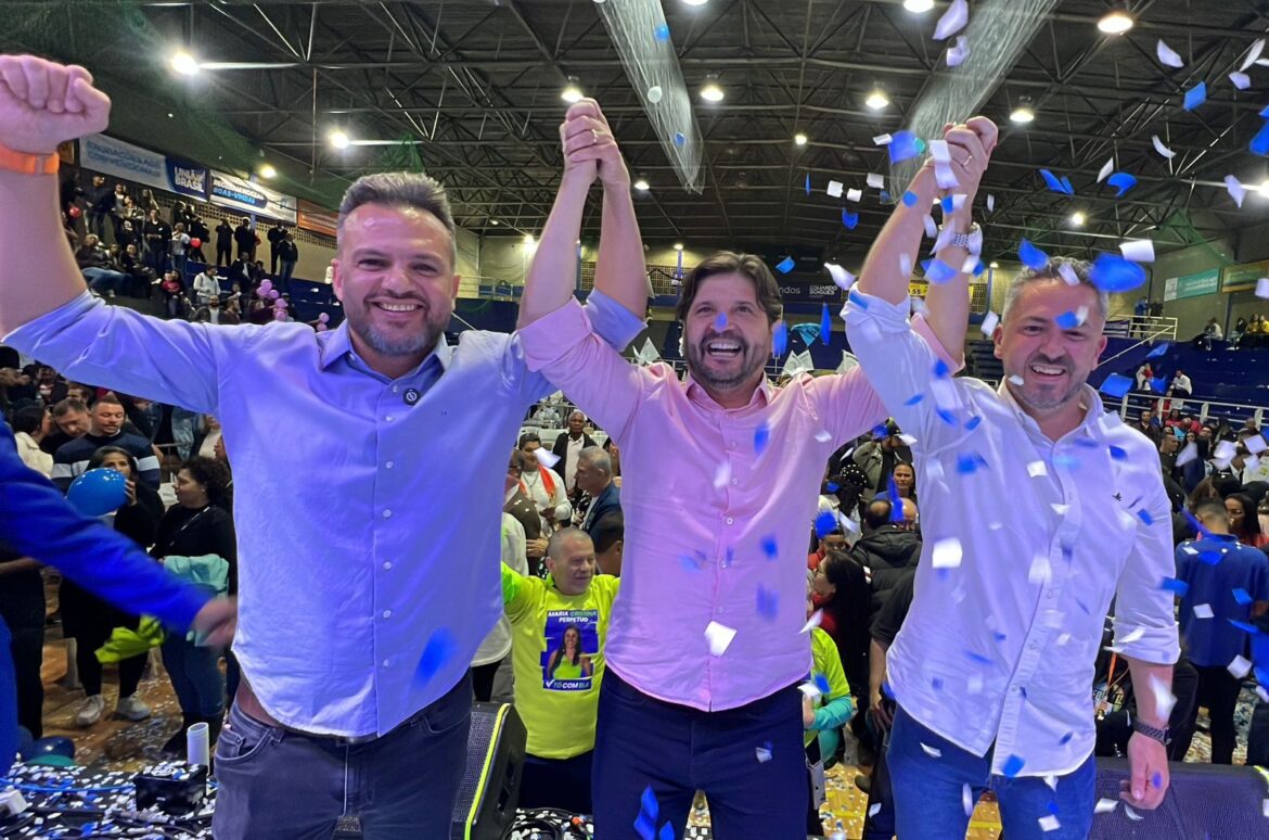 O prefeito de Itaquaquecetuba-SP, delegado Eduardo Boigues, teve a sua pré-candidatura à reeleição homologada no sábado (20), durante convenção administrativa e festiva do PL. O presidente da Executiva Nacional do partido, Valdemar Costa Neto, participou do evento, que reuniu mais de 5 mil pessoas no Ginásio Municipal de Esportes “Sumiyoshi Nakaharada” (rua Santa Rita de Cássia, 173 – Vila Japão). Durante o encontro, Boigues anunciou Rogério Tarento (PSD) como pré-candidato a vice na chapa majoritária: