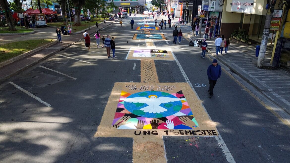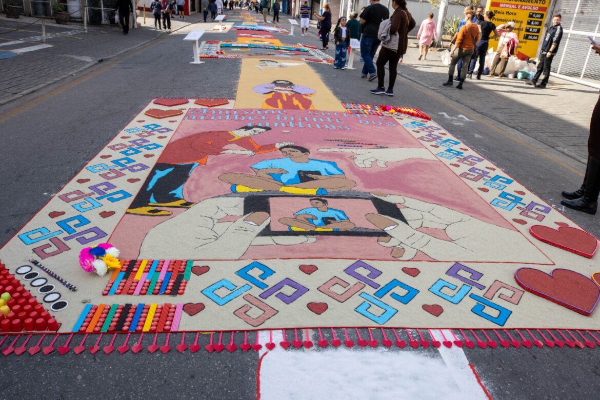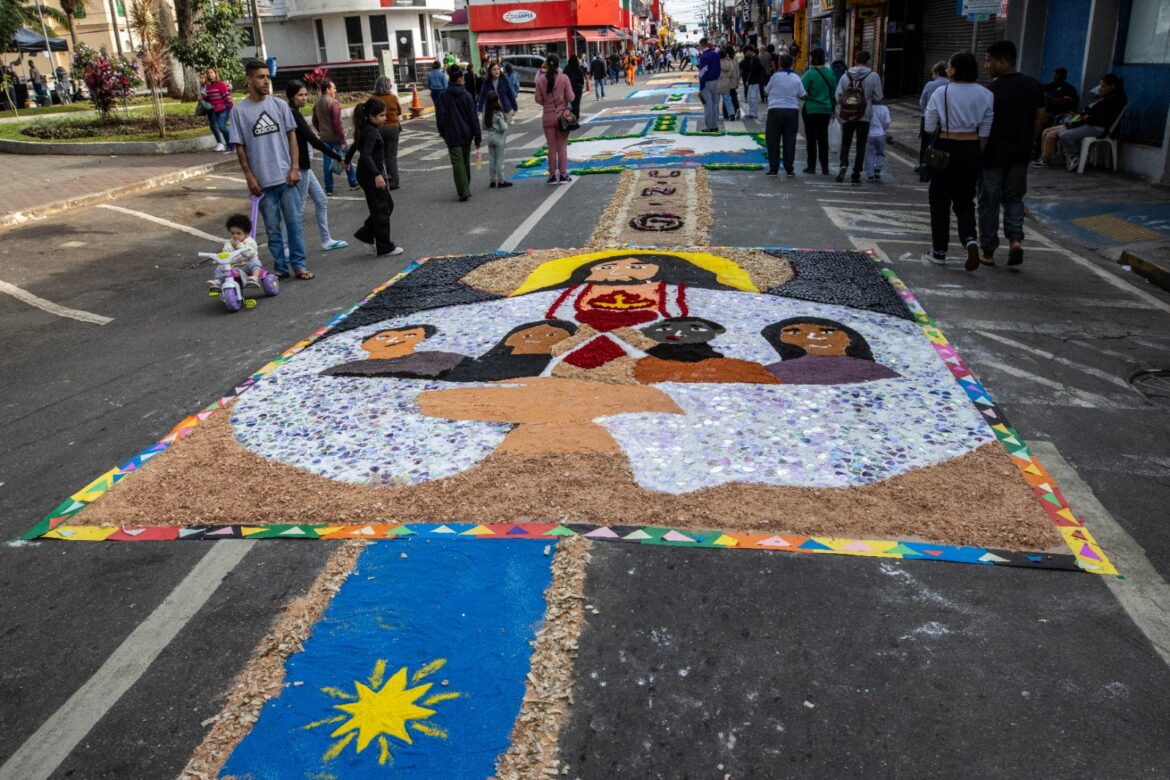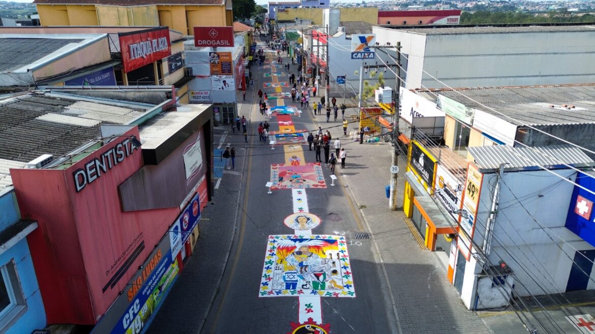 Fé, arte e emoção: assim pode ser resumido o XXXIII Encontro de Tapetes de Corpus Christi – Tradição e Beleza de Itaquaquecetuba, realizado na quinta-feira (30). Tradicional na cidade, o evento contou com a apresentação de 74 tapetes confeccionados por cerca de 700 voluntários, além da missa solene, procissão e, ao final do dia, a premiação dos tapetes que se destacaram.