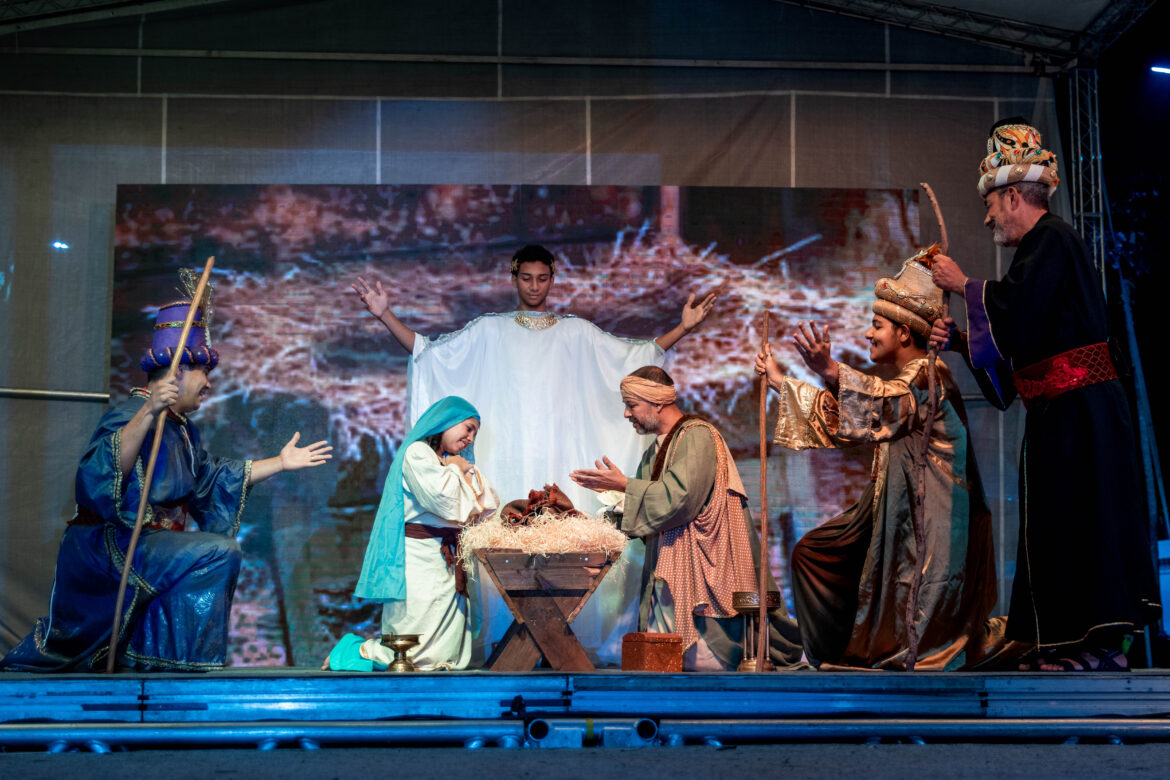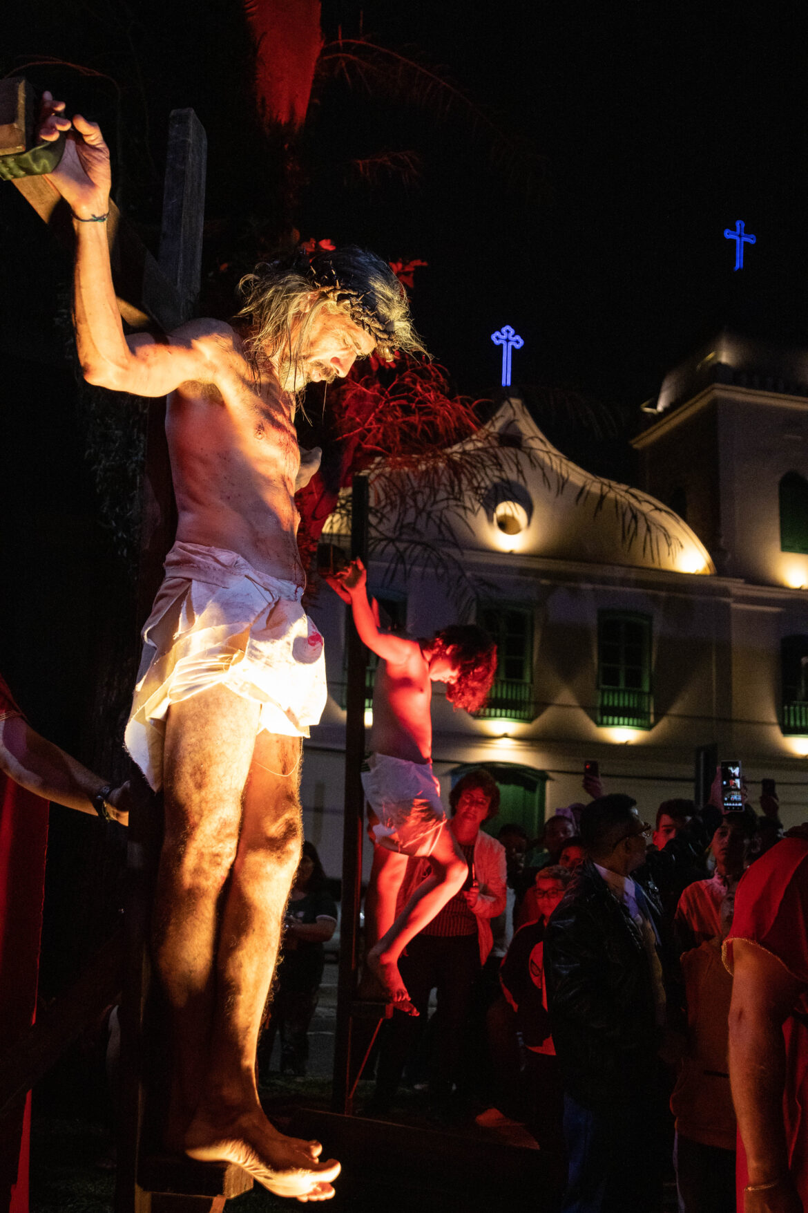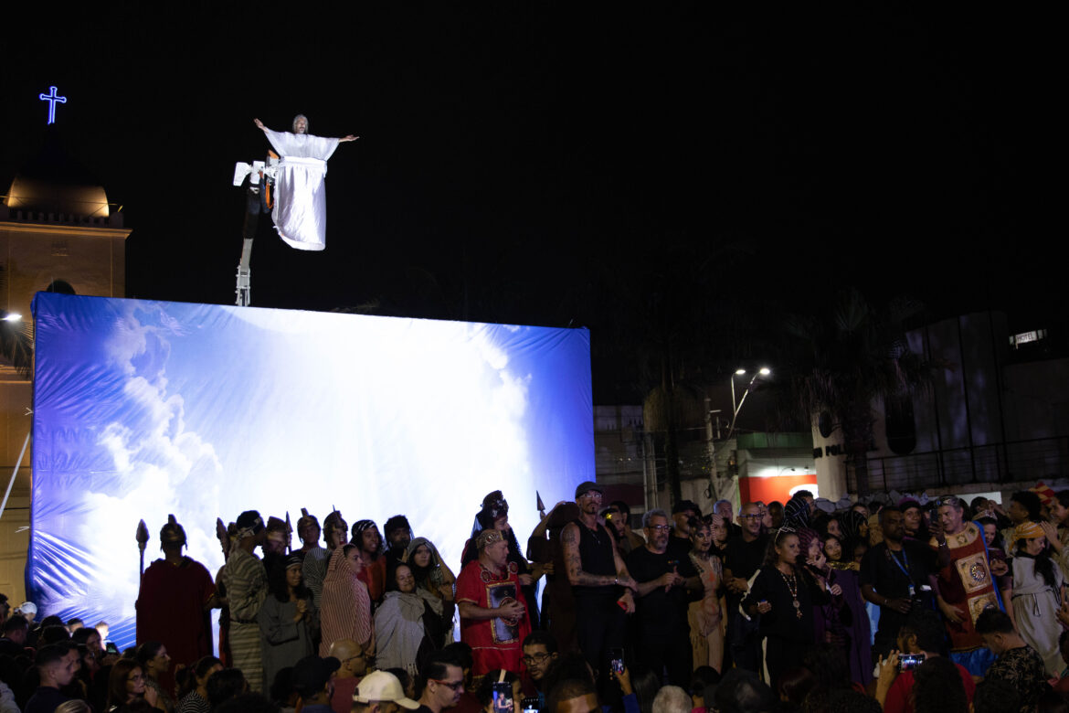Entre os principais momentos, o espetáculo retratou o nascimento de Cristo, o milagre do cego de Jericó, a traição de Judas, a via sacra e a crucificação.