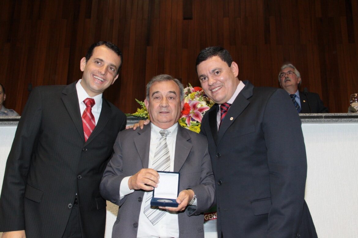 Cardosinho Foto 1: nesta imagem, o ex-vereador recebe a Medalha de Mérito Legislativo, no dia 16/09/2010, na solenidade que inaugurou a nova Galeria de Ex-Presidentes da Câmara. Com Cardosinho, estão o então prefeito de Mogi, Marco Aurélio Bertaiolli ( à esquerda), e o então vereador Mauro Araújo (à direita).