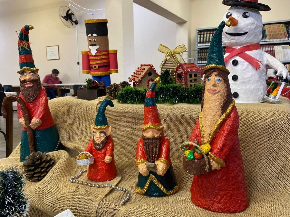 A Biblioteca Municipal de Taubaté está recebendo exposição de casinhas de Natal produzida pelos alunos do projeto Semeando Cores.