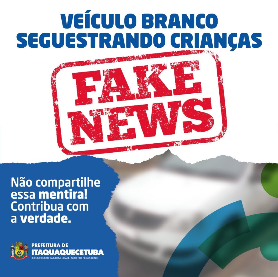 Está circulando nas redes sociais que há um carro branco com duas mulheres e um homem sequestrando crianças na cidade de Itaquá e região. A Prefeitura de Itaquaquecetuba esclarece que essa notícia não passa de uma FAKE NEWS, já que não há nenhum registro oficial ou boletim de ocorrência feito. Trata-se de um boato que causa pânico e medo na população. Não compartilhe essa mentira, contribua com a verdade.