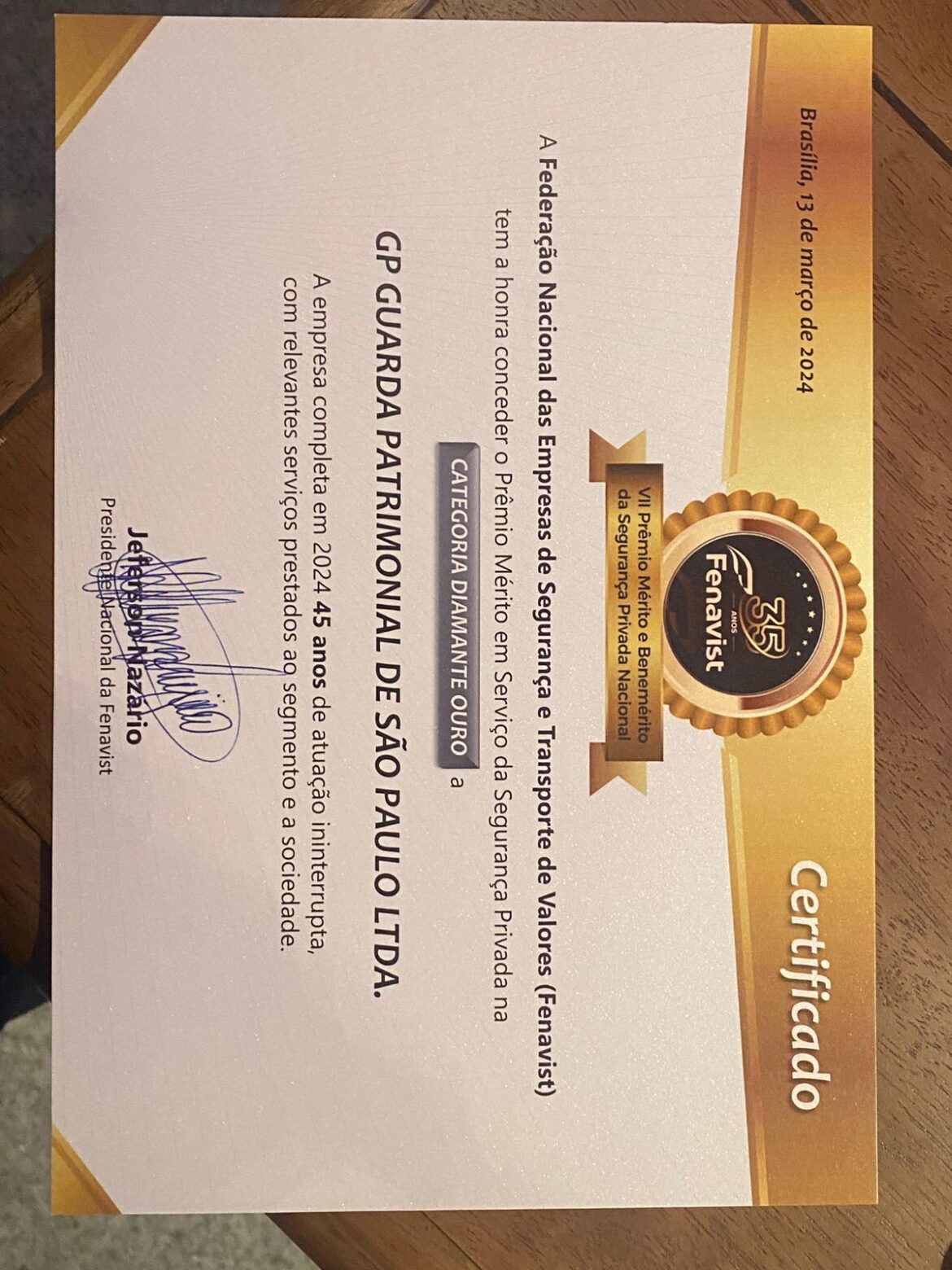 O Grupo GP teve a honra de receber o Prêmio Diamante Ouro (45 anos de tempo de operação sob o mesmo CNPJ de maneira interrupta).