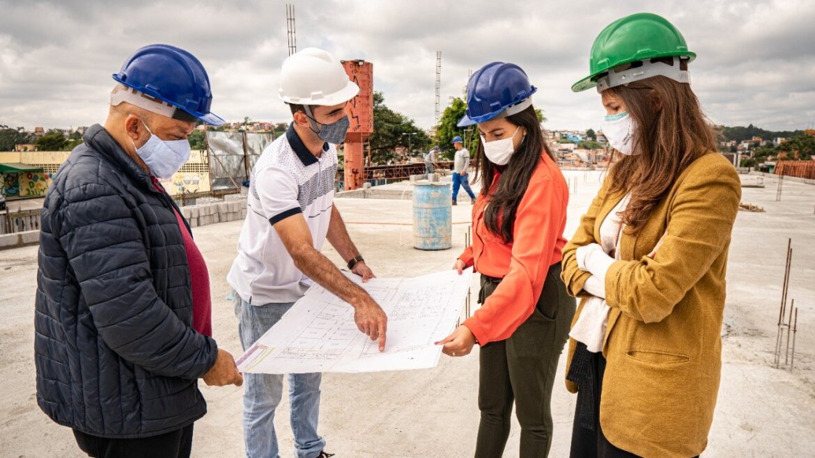 Nesta segunda-feira (10), a prefeita Priscila Gambale, acompanhada dos secretários Antônio Carlos dos Santos, Hordilei Martins e Cecília Cruz, de Obras, Planejamento e Educação, respectivamente, esteve visitando o local da construção e saiu animada com o andamento.