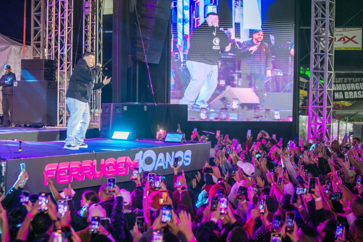O vice-prefeito Betinho e o secretário municipal de Turismo e Lazer Renan Lucena, anunciaram o show principal após às 22 horas, quando o cantor de pagode Ferrugem, vestindo uma camiseta escrito “Eu amo Arujá”, levou os mais de 10 mil espectadores ao delírio com hits como “Sinto sua falta”, “Pirata e Tesouro”, entre outros. O artista também embalou o bichinho de pelúcia símbolo de Arujá, o Arujalino, ao final do show.