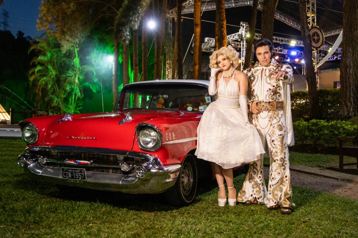 Os convidados puderam se divertir com um totem que fazia a impressão polaroid com a identidade visual da festa, pontos instagramáveis para uso livre, cassino com sete opções de jogos, roleta com shots de tequila servidos por personagens vestidas de cartas de baralho e fazer a renovação de votos com personagens de Marilyn Monroe e Elvis Presley.