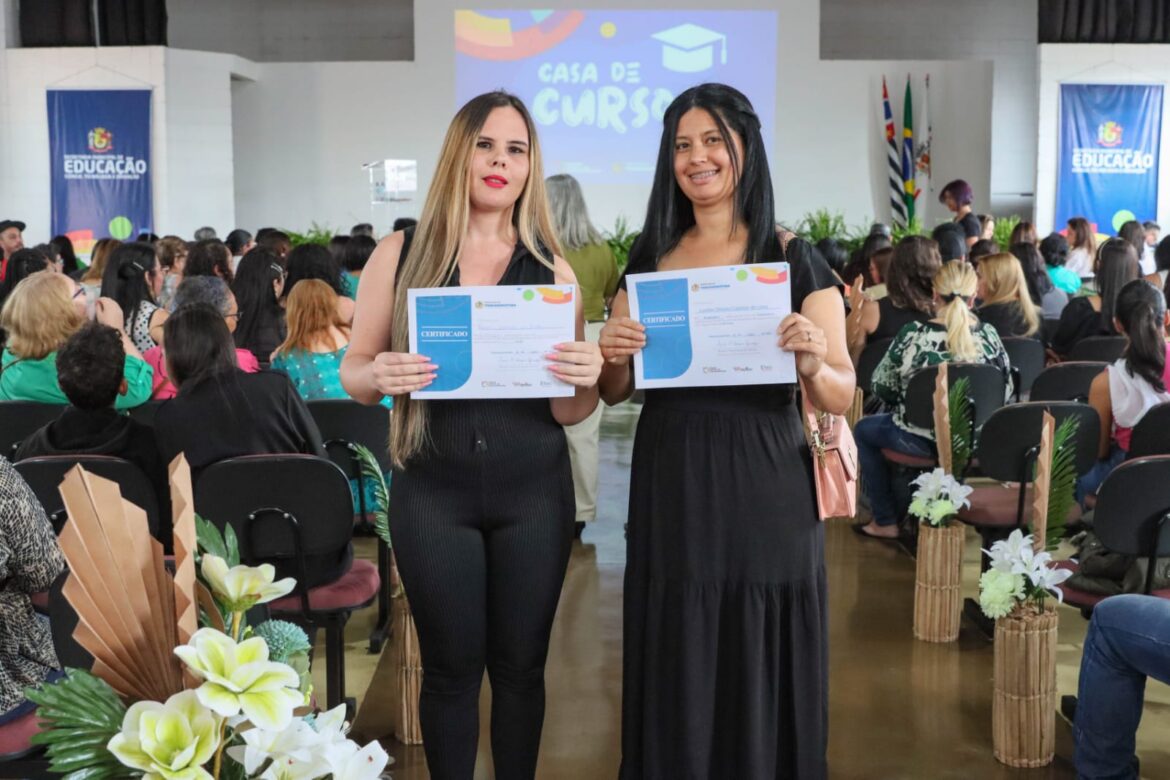 Estiveram presentes o prefeito Eduardo Boigues, a presidente do Fundo Social, Mila Prates Queroz, e os professores da Casa de Cursos. Durante a cerimônia, que ocorreu no auditório da Secretaria de Educação, os formandos receberam certificação e contaram com uma cabine fotográfica para registrar o momento especial.