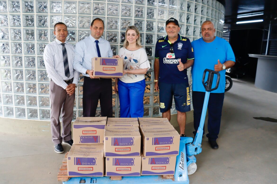 O Fundo Social de Solidariedade de Suzano recebeu na tarde desta quarta-feira (27) uma doação de 12 cestas básicas que totalizam 252 quilos de alimentos. Na oportunidade, os mantimentos recebidos no Paço Municipal Prefeito Firmino José da Costa pela presidente do órgão, a primeira-dama Larissa Ashiuchi, e pelo presidente do Conselho Municipal de Desportos (CMD), José Serafim da Silva Junior, foram entregues pelo presidente da Liga Municipal de Futebol de Suzano (LMFS), Marcelo Luís Cardoso de Menezes e representantes da liga.