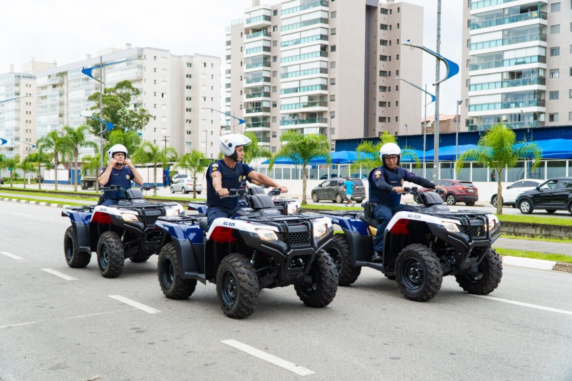 Hoje, sábado, 27, completa um mês que a Guarda Civil Municipal (GCM) de Bertioga assumiu a posição de maior efetivo de agente por habitante entre as cidades da Baixada Santista. Esse avanço se traduziu em um aumento significativo das rondas, agora equipadas com quatro quadriciclos para garantir maior mobilidade e agilidade na cobertura da orla da praia, além de contar com dezessete viaturas e patrulhamento a pé.