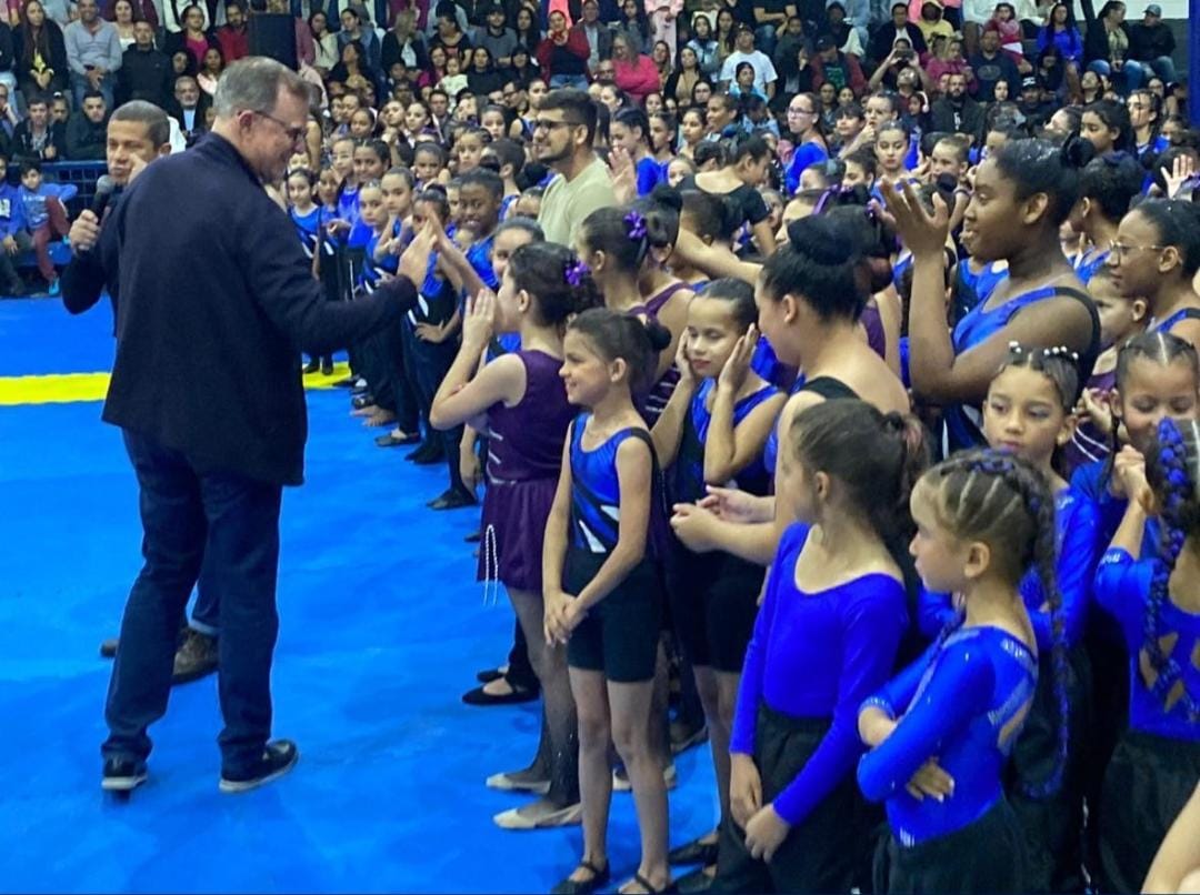 Na ocasião, cerca de 370 praticantes dos polos Cerejeiras, Barreto, Habbib Tannuri e Praça da Juventude, da modalidade de ginástica rítmica, do Programa Municipal “Viva Esporte”, realizaram passos que exigem tamanha perícia de forma majestosa e encantaram a todos os presentes que os ovacionaram.