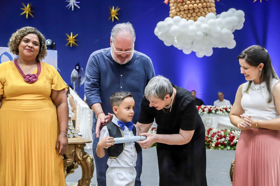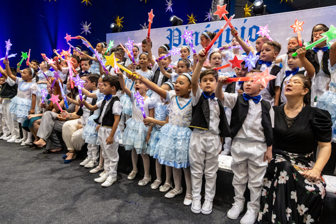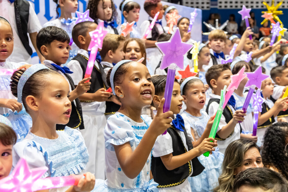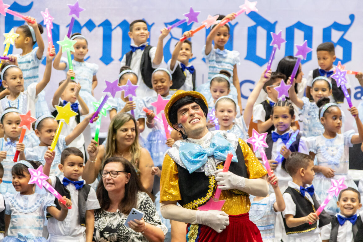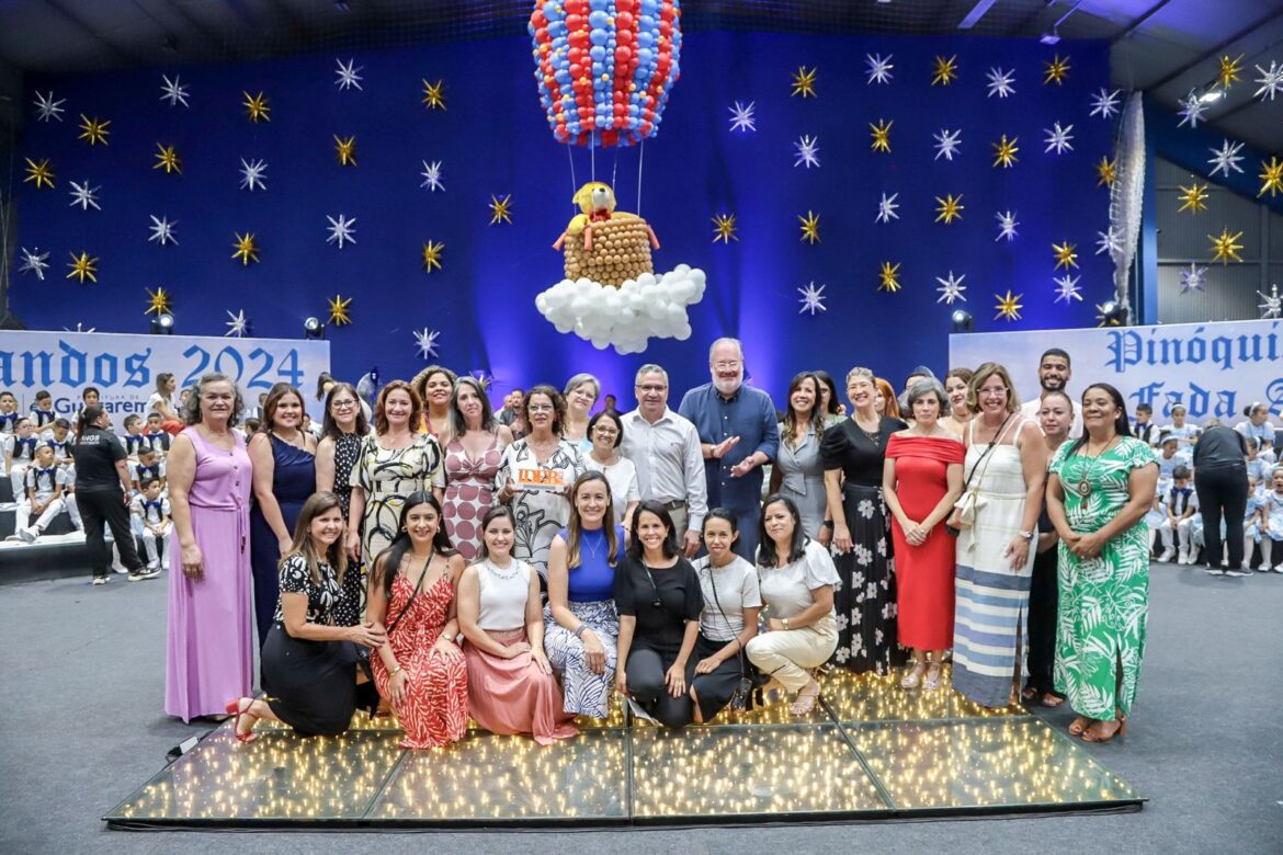 Todo o Ginásio Municipal Lázaro Germano estava decorado com estrelas e houve também performance artística do Gepeto, da Fada Azul e do Pinóquio. A escolha do tema reforça o compromisso da Secretaria Municipal de Educação em promover não apenas o conhecimento, mas também o fortalecimento de valores humanos nas crianças.