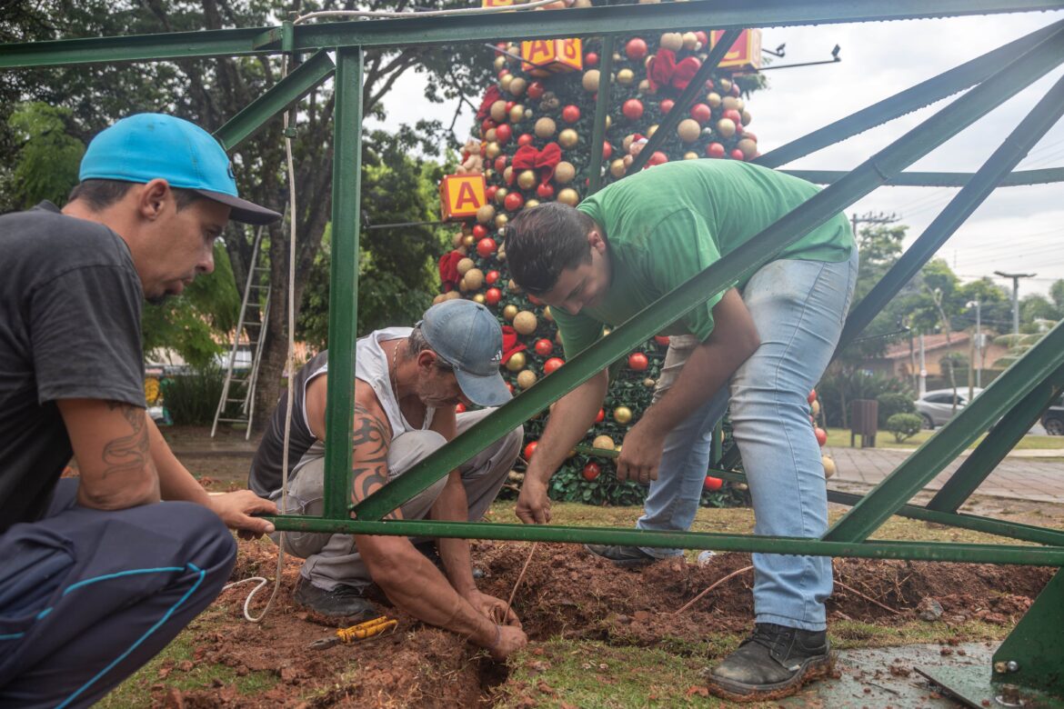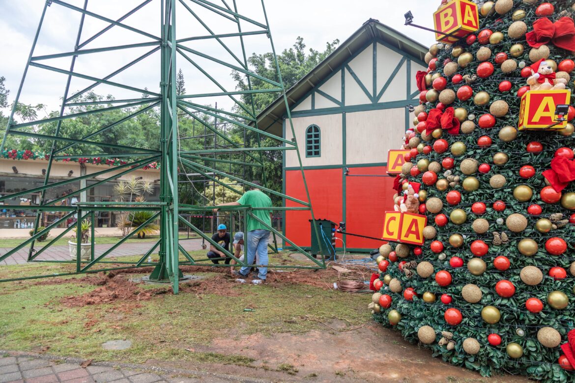 Quem anda pelo circuito do Cidade Natal já consegue visualizar os enfeites que trazem o tema ‘Brilho que Reluz em Cada Olhar’. Na Praça dos Expedicionários, além de uma árvore feita de garrafas pet, há um boneco de neve instagramável; na Praça Coronel Brasílio Fonseca, a Praça do Coreto, há luminárias pendentes nas árvores; e no Parque de Lazer “Professora Deoclésia de Almeida Mello”, a Fábrica de Brinquedos do Papai Noel está quase pronta.