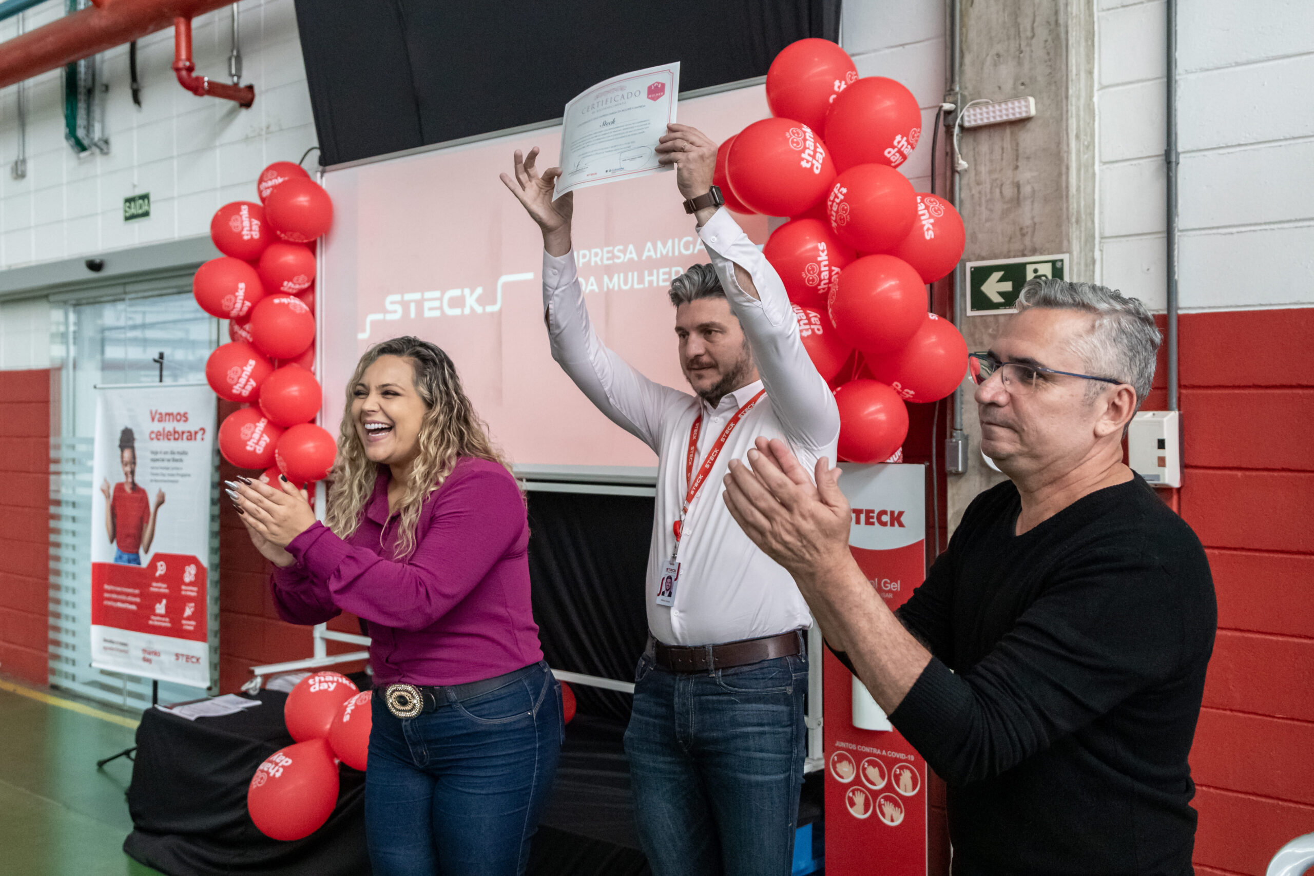 Para receber o selo, foi organizada nesta quinta-feira (26) uma cerimônia na Steck, que fica no bairro Parque Agrinco. A operação na fábrica foi momentaneamente paralisada para acompanhar a entrega do adesivo que reconhece a promoção da igualdade de gênero em todas as hierarquias no local de trabalho.