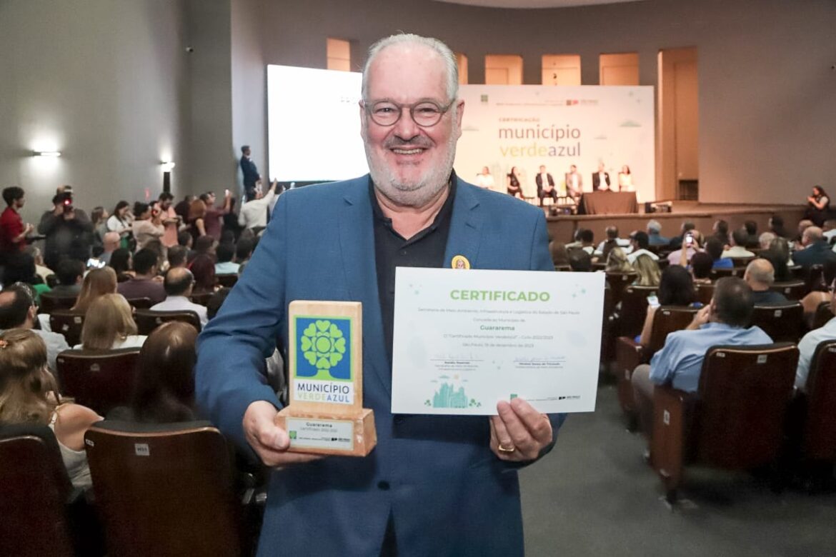 Guararema atingiu um novo patamar no reconhecimento dos esforços empregados no Meio Ambiente do município. Isso porque, na tarde desta terça-feira (19), o prefeito José Luiz Eroles, o Zé, recebeu o certificado de 1º Lugar no Ranking do Programa Município VerdeAzul, do Governo do Estado de São Paulo, na categoria de municípios de 10 mil a 49.999 habitantes.