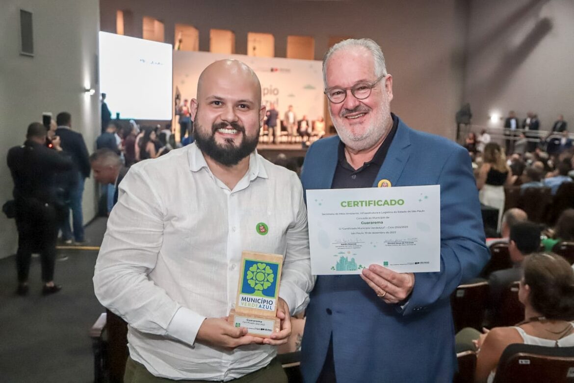 Na certificação de 2022, Guararema atingiu o 4º lugar na classificação geral do Estado, com 95 pontos – quatro a menos que neste ano. Além do prefeito Zé, a comitiva guararemense que esteve na cerimônia de entrega do certificado – que ocorreu no Palácio dos Bandeirantes – foi composta pelos servidores da Diretoria de Meio Ambiente de Guararema.