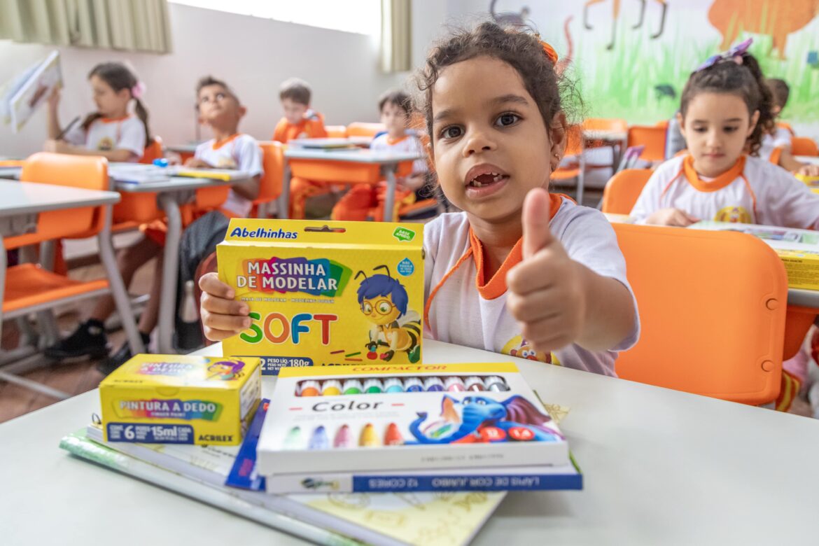 Enquanto as crianças da Educação Infantil recebem giz de cera e tintas-guache, os estudantes do Ensino Fundamental ganham canetas esferográficas que facilitam a escrita. E os livros também são diferenciados.