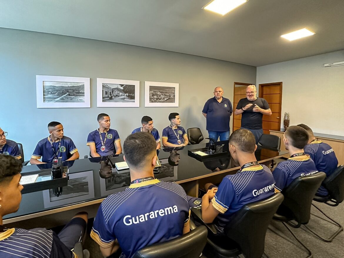 Após protagonizarem boa campanha e se sagrarem vice-campeões na copa da Liga Paulista de Futsal (LPF), os atletas do Guararema Futsal sub-20 foram recebidos com honra no gabinete do prefeito de Guararema nesta sexta-feira (8).