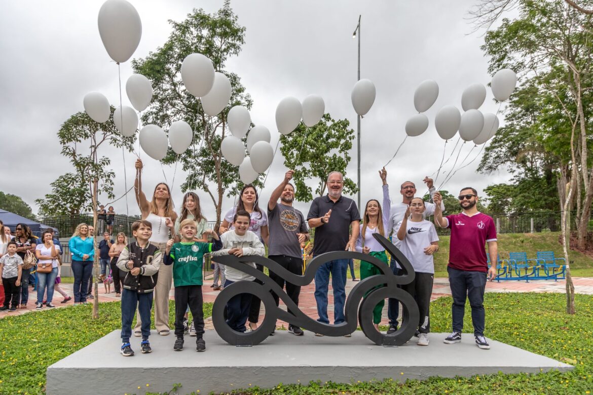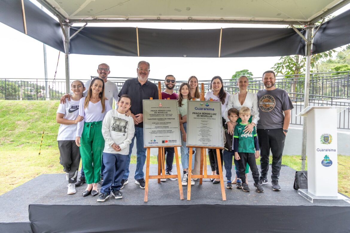 Com um bosque que valoriza e preserva a natureza, amplo espaço para a prática de atividades físicas, confortáveis bancos e um monumento artístico, foi inaugurada nesta sexta-feira (13) a Praça Sérgio Luiz de Novellis, na Estrada Municipal Dr. Hércules Campagnoli, no bairro Bellard (Paião), em Guararema.