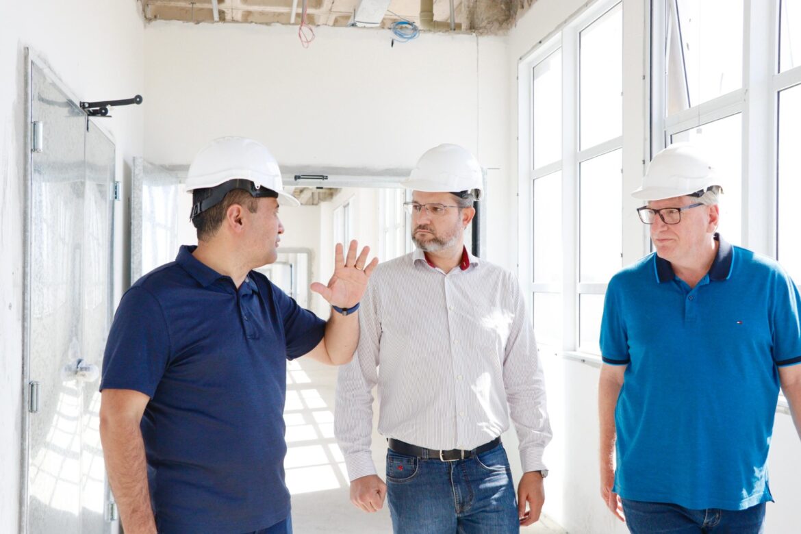 A visita também contou com as presenças dos secretários Diego Ferreira (Saúde), Samuel Oliveira (Manutenção e Serviços Urbanos) e Afrânio Evaristo da Silva (Chefia de Gabinete e Segurança Cidadã). As autoridades foram recebidas pelo engenheiro responsável pela construção, Davi Emerich Lopes.