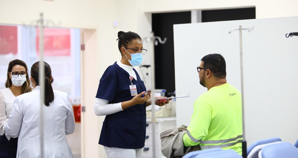 “Está sendo rápido, sem fila e bom atendimento”, disse Charles Nogueira Duarte, que ficou sabendo do Centro de Referência quando chegou ao pronto-socorro. “Muito bom aqui.”
