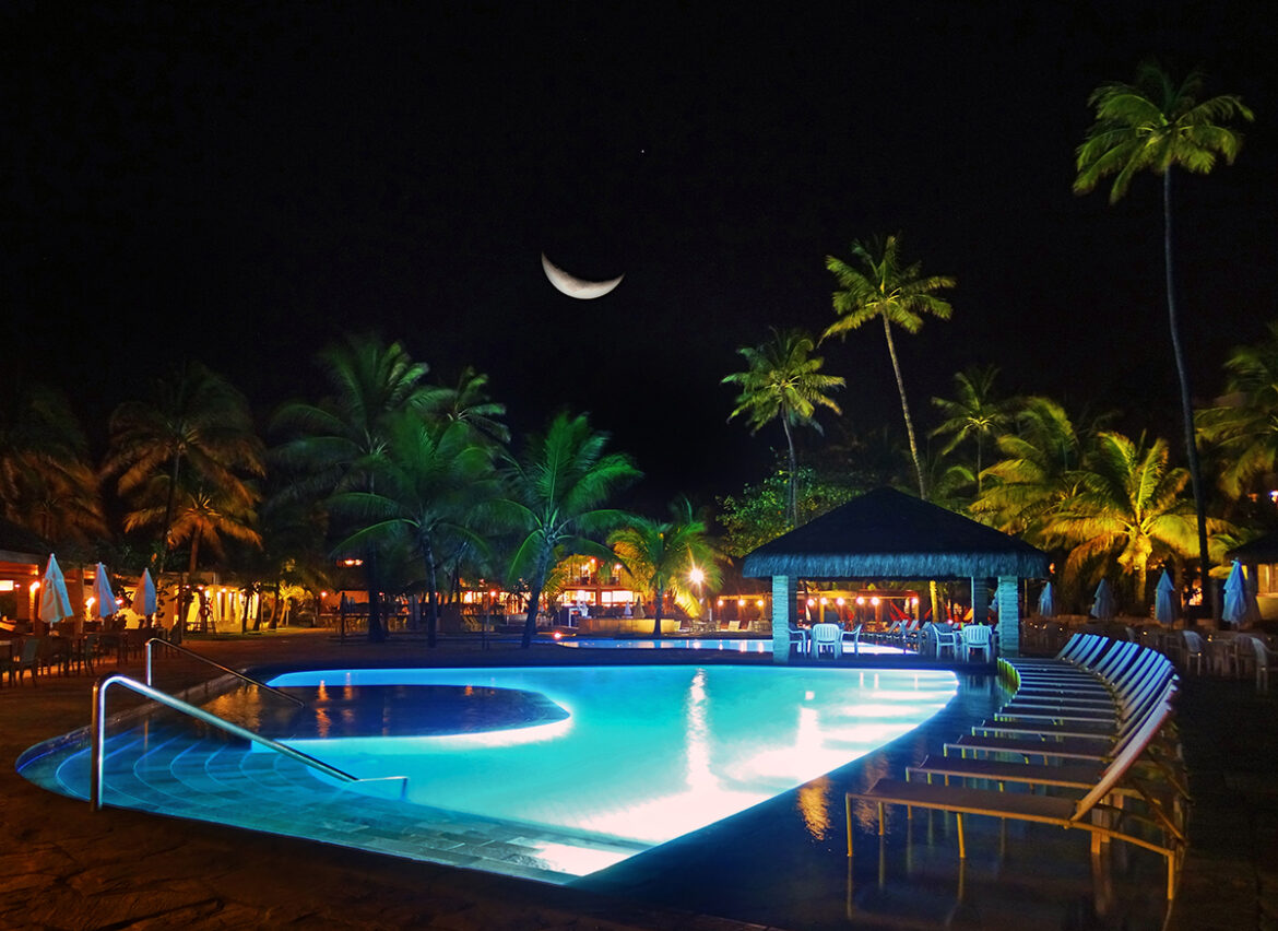 À noite, a diversão continua com uma programação musical vibrante e diversificada. Shows ao vivo ocorrem todas as noites, com ritmos que vão do forró ao axé retrô, passando pela música italiana, pop rock nacional e internacional. Essas apresentações acontecem tanto na área da piscina, sob o céu estrelado, quanto em nossa boate exclusiva, a Paranambuco — um espaço moderno e equipado com tecnologia de ponta em áudio e imagem, referência na região.